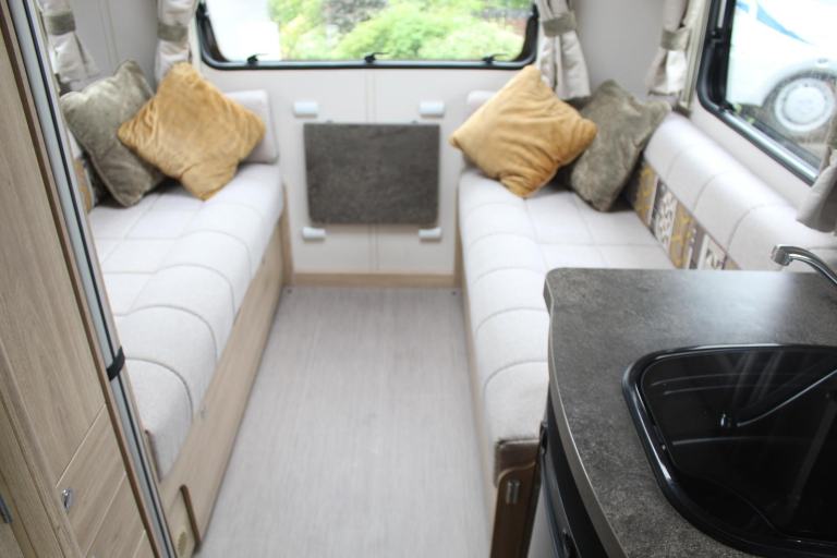 This dealer special Evolution 196 from Elddis packs the superb 6-berth layout comprising of the rear lounge, double dinette with extra travelling belts, side kitchen with washroom opposite and the clever drop down double bed.