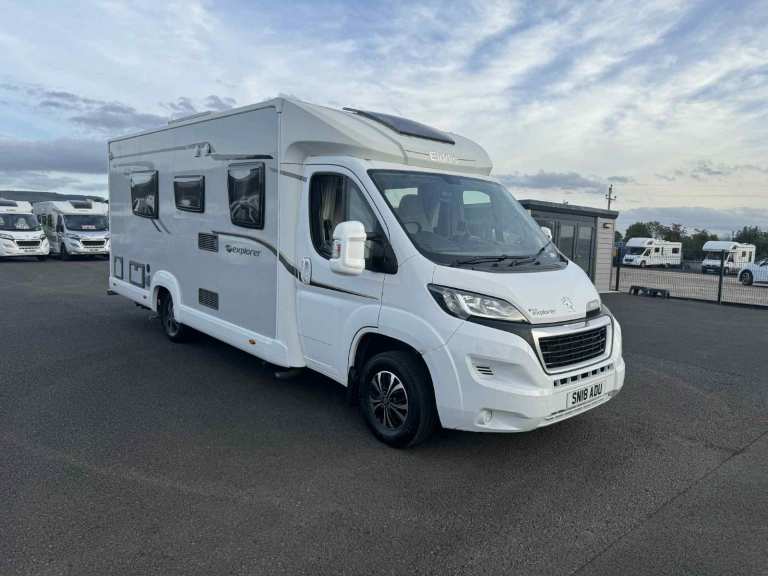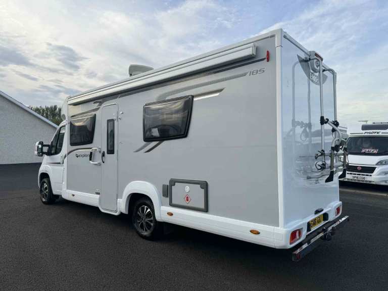 HERE WE HAVE FOR SALE A VERY NICE 2018 ELDDIS EXPLORER 185 4 BERTH MOTORHOME.FEATURES OF THIS MOTORHOME INCLUDE: AWNING, AERIAL, SOLAR PANEL, REVERSING CAMERA, TOW BAR, OUTSIDE ACCESS HANDLE, GAS BBQ POINT, OUTSIDE SHOWER POINT, BIKE RACK, SWIVEL SEATS, TWO TRAVELLING SEATS, TWIN SINGLE BEDS, END WASHROOM AND MICROWAVE.