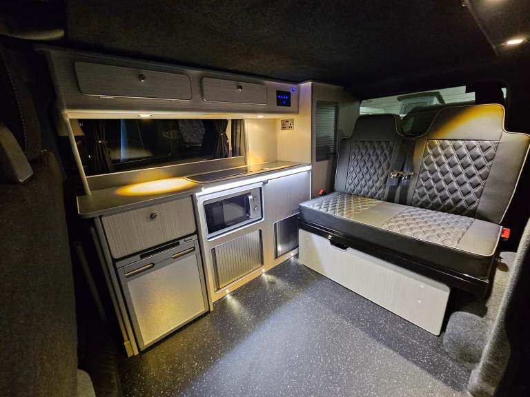 Van Lidz Pop Top Roof, 2 Burner Hobs, Large Sink, 50L Compressor Fridge, Cupboard Space, Control Panel For Power, Water Pump, 240v Hook Up, Leisure Battery, Leisure Battery Trickle Charger For Mains Hook Up, CTEK 250SE DC - DC Charger, Fold Out Bed Rock And Roll Bed With Fabricated Mattress, Blinds, Hard Floor, Table, Work Tops, Overhead Storage, Coloured LED Interior Lights, Reading Lights, Long Cupboard, Gas Bottle Storage And Strap, and Option for Swivel Seat And Much More...