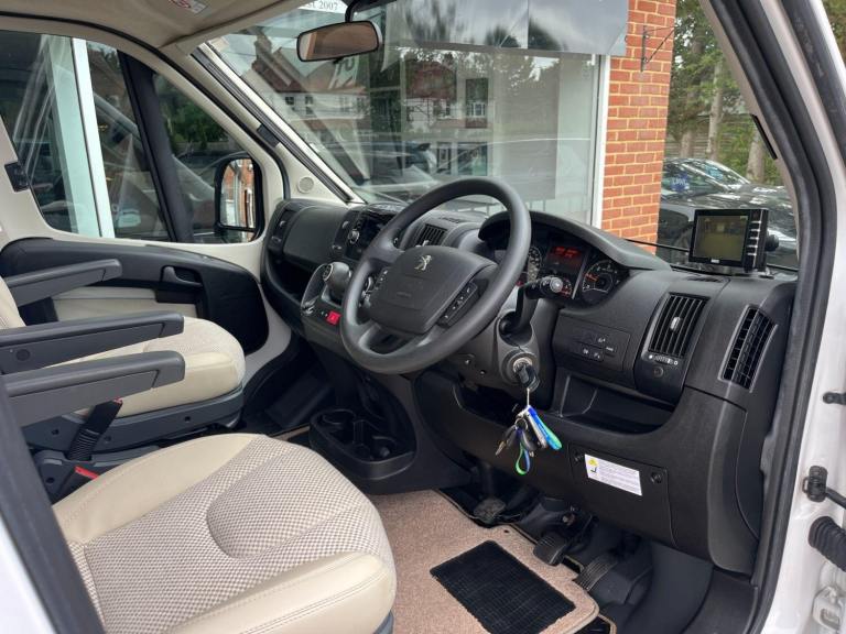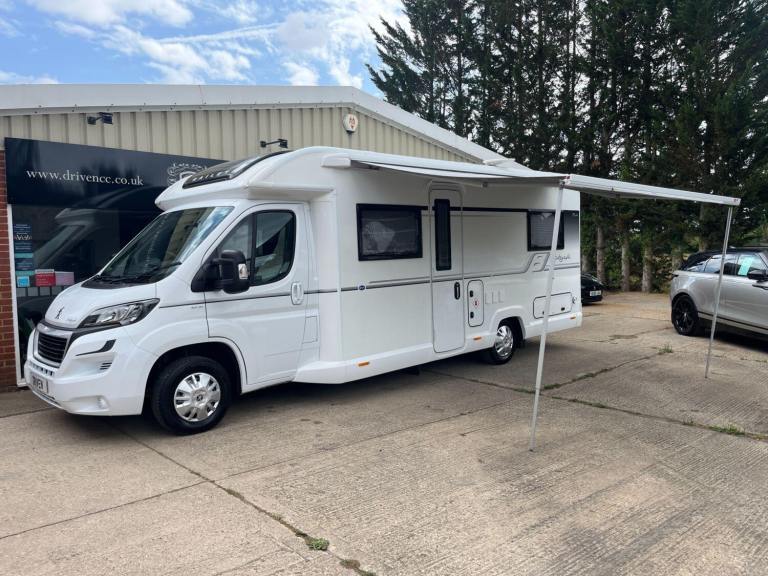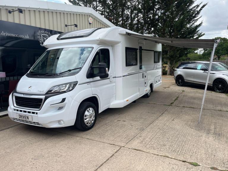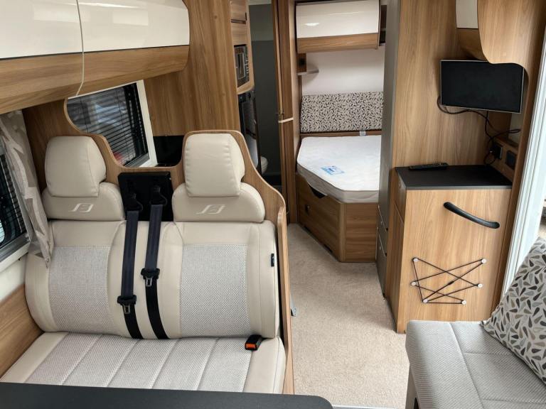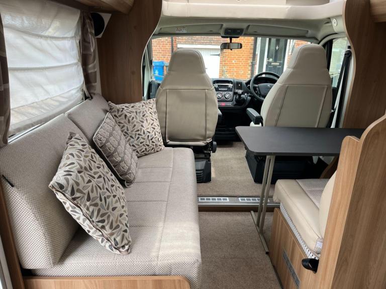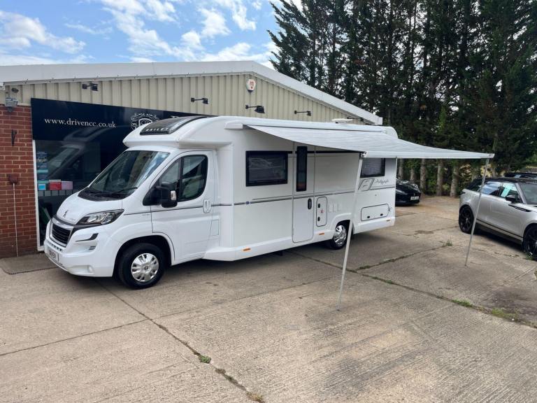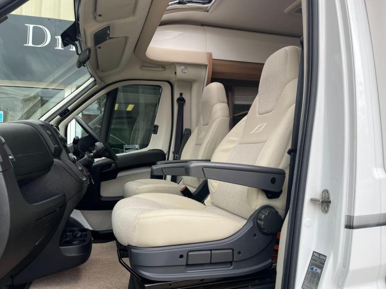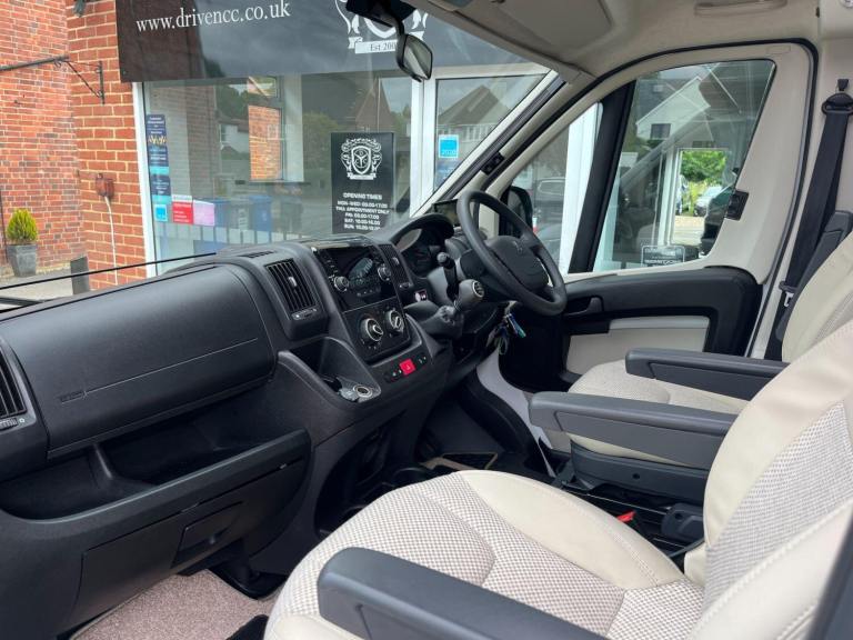 ** NATIONWIDE DELIVERY ** NEW HABITATION CHECK ** 4 SEATS ** 4 BIRTH ** ALDE CENTRAL HEATING ** RETRACTABLE AWNING ** SOLAR CHARGING ** FIXED FRENCH DOUBLE BED ** END WC / SHOWER ** CRUISE CONTROL ** TRACTION / HILL DECENT CONTROL ** Presented in Polar White with contrasting Beige part leather interior trim. A stunning one private owner example benefitting from a full service history (4 services). Specification DAB radio, Bluetooth telephone, rear parking camera, height adjustable & swiveling driver & front passenger seats (captains chairs), 2x rear (belted) passanger seats, air conditioning, cruise control, remote locking with alarm / immobiliser, dinette converting to double bed, fixed rear end French double bed (4 birth), rear wash room / WC with seperate shower enclosure, fully fitted kitchen with mixer tap (hot & cold water) with stainless steel sink, gas oven and 4 burner hob, dual fuel full sized fridge / freezer, microwave oven, TV with adjustable aerial & outside hook up, multiple USB plugs, fly screens / curtains & blinds all round, fitted / tailored (removable) over mats throughout, Alde digital thermostate controller for heating / hot water, electric hook up cable, roof mounted solar array with battery charging, finished with a retractable side awning & legs. Habitation check just completed. Exceptional condition throughout. NO disappointments. Supplied with original owners wallet, owners / operators manuals & 2 keys. Buy with confidence from a long established dealer with fantastic reputation, feedback & reviews.