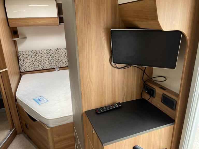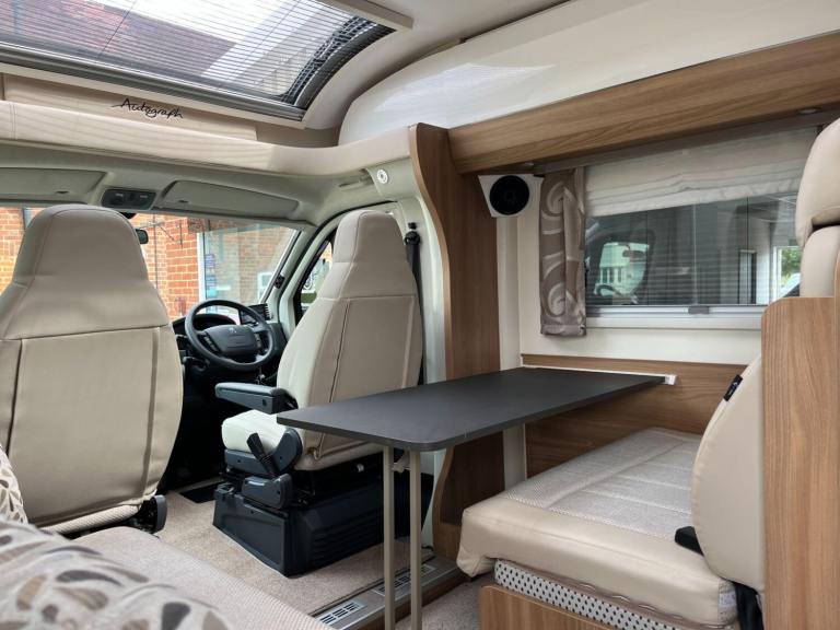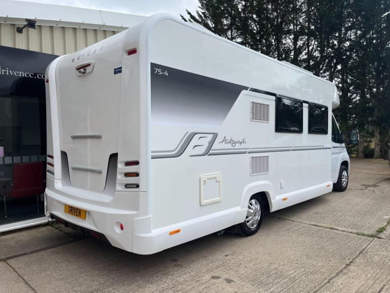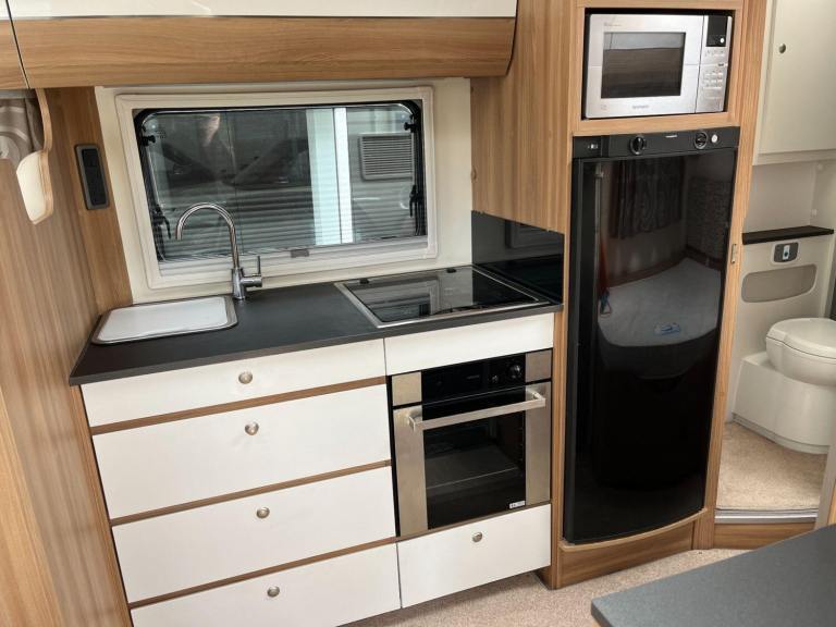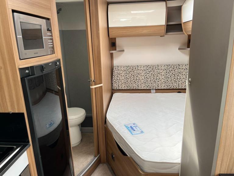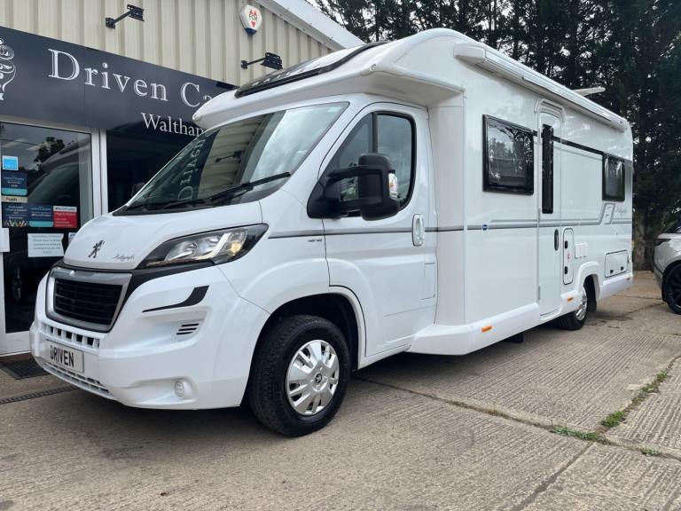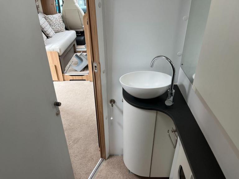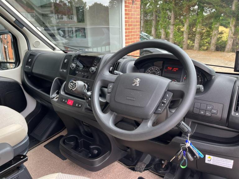 ** NATIONWIDE DELIVERY ** NEW HABITATION CHECK ** 4 SEATS ** 4 BIRTH ** ALDE CENTRAL HEATING ** RETRACTABLE AWNING ** SOLAR CHARGING ** FIXED FRENCH DOUBLE BED ** END WC / SHOWER ** CRUISE CONTROL ** TRACTION / HILL DECENT CONTROL ** Presented in Polar White with contrasting Beige part leather interior trim. A stunning one private owner example benefitting from a full service history (4 services). Specification DAB radio, Bluetooth telephone, rear parking camera, height adjustable & swiveling driver & front passenger seats (captains chairs), 2x rear (belted) passanger seats, air conditioning, cruise control, remote locking with alarm / immobiliser, dinette converting to double bed, fixed rear end French double bed (4 birth), rear wash room / WC with seperate shower enclosure, fully fitted kitchen with mixer tap (hot & cold water) with stainless steel sink, gas oven and 4 burner hob, dual fuel full sized fridge / freezer, microwave oven, TV with adjustable aerial & outside hook up, multiple USB plugs, fly screens / curtains & blinds all round, fitted / tailored (removable) over mats throughout, Alde digital thermostate controller for heating / hot water, electric hook up cable, roof mounted solar array with battery charging, finished with a retractable side awning & legs. Habitation check just completed. Exceptional condition throughout. NO disappointments. Supplied with original owners wallet, owners / operators manuals & 2 keys. Buy with confidence from a long established dealer with fantastic reputation, feedback & reviews.