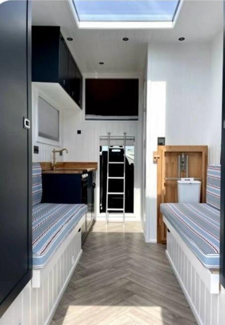 We are selling our beloved camper van with a heavy heart and would love it to go to someone who will enjoy it as much as we have. High quality professional conversion with fitted kitchen, plenty of storage, wardrobes, additional under bed storage and a useful porch area. The main bed (seats in cox and cox fabric that convert into a large double) is super-king size. Newly fitted blind on large sky light. Children’s bunks at either side of the camper. Up to date with MOT (until January 2027), no mechanical issues and a smooth runner. Shower area with cassette toilet. TRUMA heating system and hot water. 75l on board water tank. 3-way fridge. 12v leisure battery plus 240 hook up. USB sockets. TV.