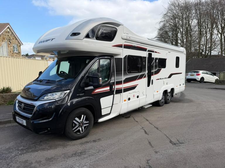 2018 Swift Kon-Tiki – Luxury 6 Berth Motorhome – Only 4,200 Miles !!!!! FIRST TO SEE WILL BUY !!!!!This exceptional 2018 Swift Kon-Tiki represents the pinnacle of luxury motorhoming, offering outstanding build quality, premium specification and true “home from home” comfort. With just 4,200 miles from new, this is a rare opportunity to own a barely used, top-of-the-range model.Built on the trusted Fiat Ducato chassis and powered by the sought-after 2.3 Multijet 180BHP engine with automatic gearbox, it delivers effortless performance, smooth cruising and excellent long-distance capability. The tag axle design provides enhanced stability, improved weight distribution and a more refined driving experience, especially on longer journeys. Inside, the spacious 6 berth, 4 belt layout is perfectly suited for families or extended touring. It features a large over-cab double bed and a superb rear island bed with generous under-bed storage, alongside a comfortable front lounge with swivel captain’s seats creating a sociable living area. Kon-Tiki models are renowned for their exceptional space, clever storage solutions and high-end finish throughout. The fully equipped kitchen includes a Dometic oven & grill, 3 gas and 1 electric hob, extractor fan, microwave and a Dometic 3-way fridge, giving you everything needed for cooking on or off-grid. The washroom is equally impressive, offering a Thetford cassette toilet and vanity area, plus a separate shower cubicle for maximum convenience and comfort.Additional features include Alde wet central heating for true all-season use, twin solar panels, satellite system, Fiamma F45L awning, external BBQ and shower points, plus extensive internal and external storage options.With a 5000kg GVW and tag axle chassis, this motorhome offers excellent payload capacity and road presence, making it ideal for long trips or full-time adventures.For added peace of mind, the vehicle will be supplied with a full service and fresh MOT upon sale.A superb, high-specification motorhome that combines luxury, practicality and reliability—ready to drive away and enjoy.Located:- HUDDERSFIELDClick REQUEST MORE INFO on our website for the additional photos and walk around videoAlso available on this vehicle is Finance, Warranty, Part Exchage