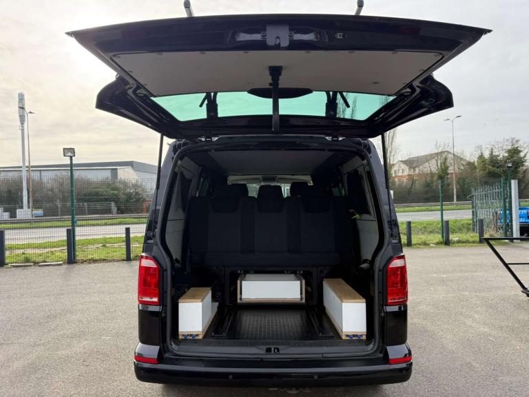 Day van ,This 2018 Volkswagen Transporter T32 Highline TDI BlueMotion Technology camper van stands out with its remarkably low mileage of just 69,701 miles for its age. As a Highline derivative, this semi-automatic camper van boasts a robust 2.0 litre Euro 6 diesel engine, offering an efficient and capable driving experience. It comes equipped with a suite of practical features, including automatic headlight activation with daytime running lights and manual coming home function, a Bluetooth hands free set for seamless connectivity, and rear parking sensors to aid manoeuvring. The Climatic cab air conditioning system ensures comfort during journeys, and the Lights and Vision package further enhances visibility and convenience.Adjustable rock and roll bed on sliders (king-size)Swivel front seatsAustops pop-topAutoterm diesel heaterLeisure battery with solar panelPull-out storage boxesThule bike rack victron solar panel system This Volkswagen Transporter offers impressive practicality with a generous cargo volume of 5800 litres and a substantial payload weight of 1098 kg, making it ideal for various adventures or work. Its fuel economy of 47 mpg and low CO2 emissions highlight its efficiency, suggesting it is a more economical choice compared to many similar vehicles. These combined attributes make this camper van a well rounded and appealing option for those seeking a versatile and well maintained vehicle.