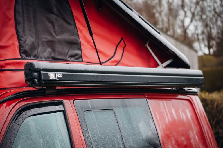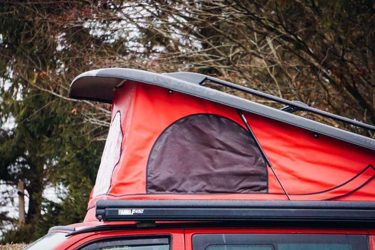 – Skyline roof with scenic canvas, fold down bed and mattress