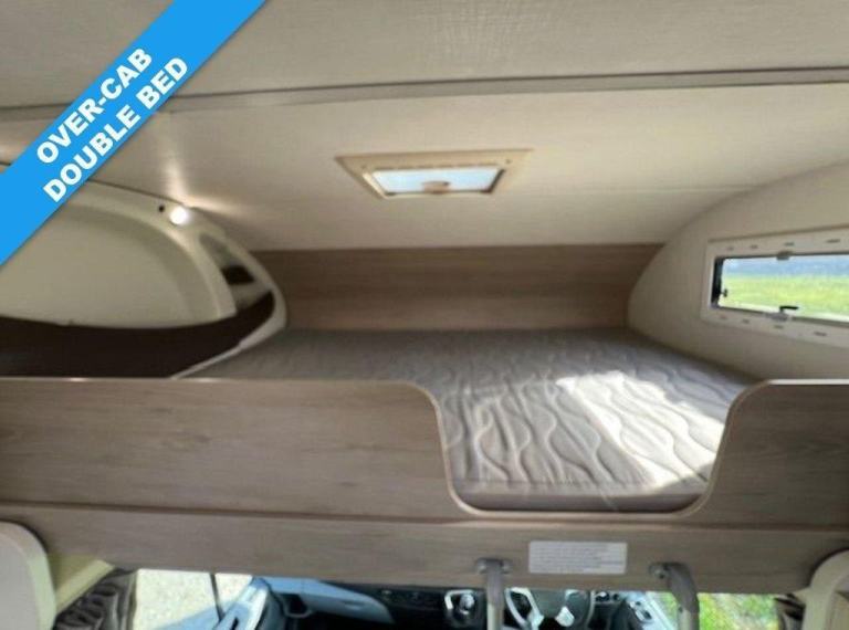 This Chausson Flash C646 features; 6 Berth, 6 Belted Seats, Over Cab Double Bed, Dinette Converting To Double Bed, Rear Bunks, Front Dinette inc. Extendable Table and Seating, Mid Bathroom, Wardrobe, Thetford Triplex 2 x Burner, 1 x Hotplate Hob, Oven and Grill, Sink and Drainer, Tall Fridge-Freezer, TV, MaxView Aerial, Extensive Cupboards, Fitted Blinds-Nets, Webasto Diesel Heating, Truma Water Boiler, 2 x Door Rear Garage, Bike Rack.