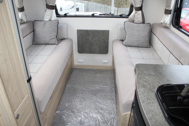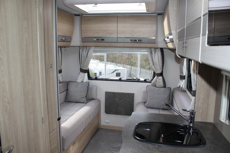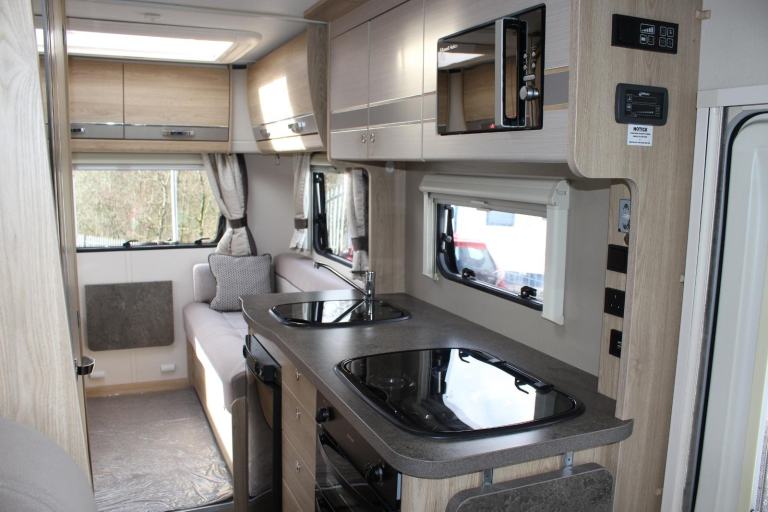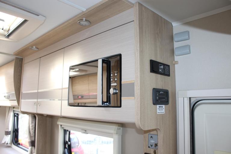 Sunroof; TV Aerial; Microwave; Cooker; Air Conditioning; External Side Lockers; 12V Lighting; Central Seating Group; Blinds; Grill; Awning; Solar System; Double Glazing; Oven; 240V Lighting; Sink; Hand Washbasin
