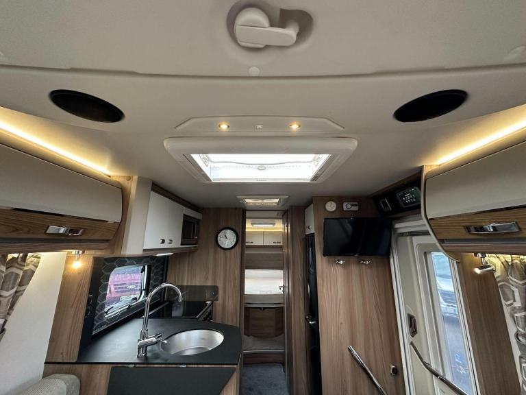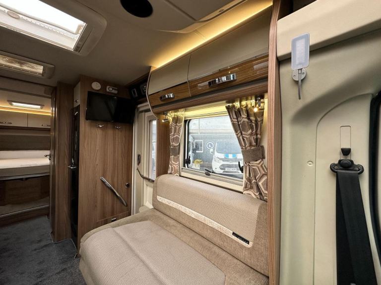 Fixed Island Bed | Bathroom with separate shower and Thetford toilet | Alde Heating | Dometic Oven, Dometic Fridge/Freezer |Front Heated Seats | Awning & Skylights| Reverse Camera | Solar Panel | Television| Tow Bar | USB Ports | Sat Nav |Bike Rack |Large Garage Space.