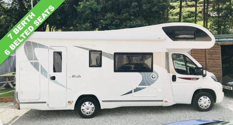 Chausson Flash 656 Motorhome, Built from brand new by this well respected quality manufacturer. Based on th very popular Fiat Ducatto 2.3 Litre Euro 6. 6 belted seats 2 double beds with 3 singles so ideal for large family or possibly 2 couples with 3 kids colectively. One bunk can be closed off and wound up to make garage a lot bigger. Large Thetford Fridge, Toilet with wash basin and decent size shower. will have full service with a new MOT Prior to delivery. Living Space: It features a lounge/dining area with seating for six to eight, and a kitchen with a hob, grill, and fridge. Bathroom: Includes a separate shower cubicle, toilet, and washbasin. Garage: The rear bunk beds can be converted into a large garage space. includes cab air conditioning, cruise control All our vehicles over £3000 come with our 5 Star package! * Full service with new oil, oil filter, air filter and pollen filter, and brakes, lights and levels checked. * Minimum of 9 Months MOT or a will have a Brand new one! * 6 Month comprehensive parts and labour warranty F.O.C.! * Full valet prior to collection! * HPI Clear with PDF Report (unless clearly stated otherwise) Extended warranties available at competitive rates. Give us a call to make your next purchase a special purchase. FCA Regulated, Finance available Subject to status! 5 Day Driveaway insurance available at small cost (circa £30) to get you on the road sooner than you think. Secure any car with a small deposit. Airport/Train station collection service All our Part X to clear cars (under £3000) come with our Budget 4 star package! * Minimum of 5 Months MOT or a will have a Brand new one! * Lights and levels checked! * HPI Clear with PDF Report (unless stated) * 3 months Major mechanical parts warranty.7 BERTH 6 TRAVELING SEATS AND UNDER 7M L, REAR GARAGE THAT CAN GO BIGGER LOSE BUNK, 2 DOUBLES 2 BIG SINGLES AND SMALL SINGLE, FIAT DUCATTO 2.3 EURO 6 BASE , FULL SERVICE 12M MB AND G WARRANTY FOC!,