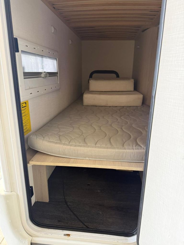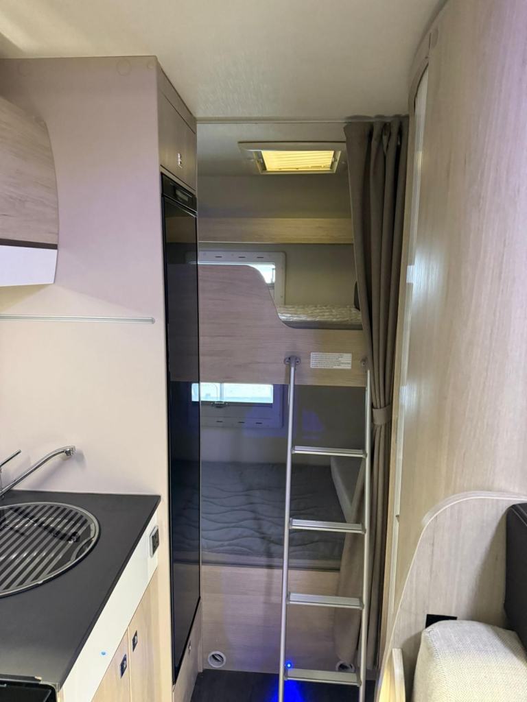 Presenting this practical and stylish family motorhome with all the essentials. The layout offers a large over cab bed, central seating, kitchen and washroom, plus two bunks at the rear, the lower of which raises to create garage space. In the central area is a large wardrobe opposite the dinette, which has 4 seatbelts and a swivel table extension. The dinette can be converted into another bed. Onto the kitchen that includes gas hob, oven and grill, tall fridge/freezer. Opposite is the washroom which has a toilet and vanity sink plus a solid shower screen to create an enclosed cubicle. At the rear are two full sized bunks, the lower of which raises to create the garage space. Other features include - 3500kg so can be driven on a standard driving licence, cab air con, blinds, heating, TV, reverse camera, awning and much more!