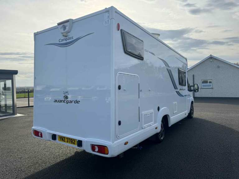 HERE WE HAVE FOR SALE A VERY NICE 2019 COMPASS AVANT GARDE 194 4 BERTH FIXED BED MOTORHOME WITH ONLY 14K MILES. FEATURES OF THIS MOTORHOME INCLUDE: AWNING, AERIAL, SOLAR PANEL, LARGE REAR GARAGE, OUTSIDE HANDLE, REVERSING CAMERA, SWIVEL SEATS, MICROWAVE, REAR FIXED BED AND TWO TRAVELLING SEATS WITH BELTS.