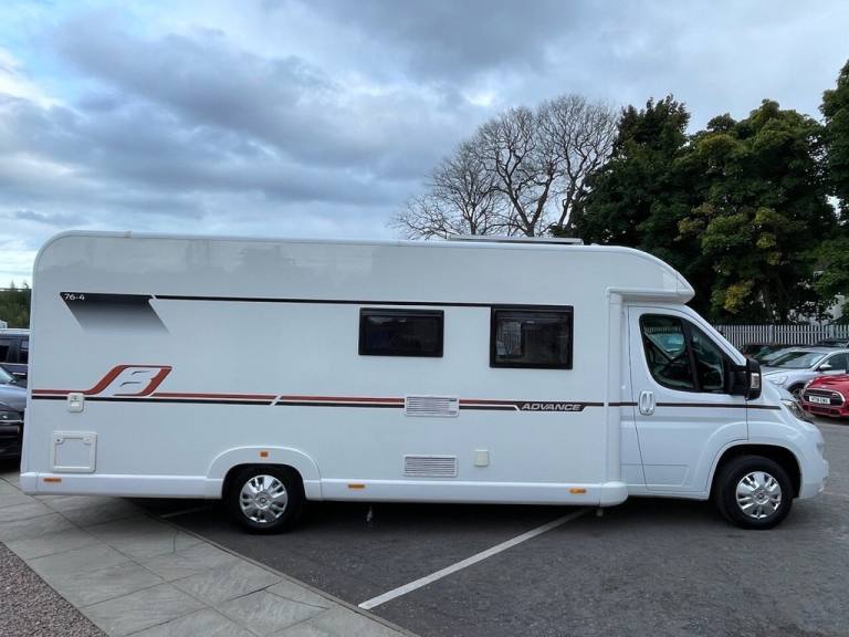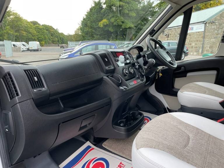 PEUGEOT BAILEY ADVANCE 76-4 2.0 BLUE HDI 335 4 BERTH ( END BEDROOM WITH FIXED DOUBLE BED, FRONT LOUNGE/DINETTE CONVERSION THAT FOLDS INTO DOUBLE BED, CENTRAL KITCHEN, ADJACENT END WASHROOM WITH SHOWER, 4 BERTH, 4 BELTED SEATS, ) Motorhome comes in Peugeot white cab paint with white body and advance 76-4 black and copper orange body decals, Silver Peugeot wheel trims, Bailey advance 76-4 body kit, Roof solar panel, Fiamma F45s side wind out awning, Side awning door light, Outside locker, Large front roof window, Fiamma fixed bike rack, Electric windows, Electric adjustable wing mirrors, Daytime lights, 6 speed manual gearbox, Central locking, Driver selector modes, Hill descent, LED trip computer speedometer display, Front cab blinds, 4 spoke steering wheel, Multi function steering wheel, Speed limiter, Cruise control, Climate control, Air conditioning, Peugeot Bluetooth stereo unit, Aux/Usb port, DAB radio, Bluetooth, Luxurious cream and beige Bailey advance 76-4 half leather and cloth front swivel captain chairs, Bailey advance 76-4 cloth seats through out, Front lounge/dinette with 4 seats with 4 seatbelts and folds into front large bed area, Truma heating system, Water heater, Large waste and fresh water tanks, On board blinds and fly screen, Skylights throughout, Loose lay removeable carpets, Central kitchen with 3 burner gas hobs and TFORD combined grill and oven, Built in Daewoo microwave, Dometic medium fixed on board fridge and freezer, Interior lighting with spotlights throughout, Wardrobe and various storage cupboards, Huge under bed storage area with external access, Adjacent wash room with shower and hand basin and TFORD electric flush cassette toilet, Gorgeous Bailey advance 76-4 interior features throughout, White gloss and light wood styling throughout, TV Ariel inputs, Rear bedroom with large fixed double bed, Huge under bed storage area, All of our vehicles are HPI checked with full report supplied at point of sale. Where applicable a new MOT will be completed prior to delivery. This Motorhome comes with free delivery anywhere in the uk. All various essential checks and tests will be done at the point of sale. To arrange a viewing of any of our motorhome & campervan stock please call to book viewings by appointment only at our main site at Craibstone business park, Bucksburn, Aberdeen, AB21 9TN.12V Power Socket, 12V Power Socket - Cargo Area, 220A Alternator, FM - DAB Radio, Halogen Headlamps with Clear Polycarbonate Lenses, High Level Third Brake Light, Power Assisted Steering - Variable, Remote Headlight Adjustment From Facia, Roof Mounted Aerial, Speakers x4, Speed Limiter, 2-Button Plip Remote Control Central Locking x 1, ABS - Anti Lock Braking System, Deadlocks, Digital Clock, Door Open Warning for Cab Doors, Drivers Airbag, EBFD - Electronic Brake Force Distribution, ESP - Electronic Stability Programme, Gear Shift Indicator, Lights On Warning, Oil Level Indicator, Rev Counter - Water Temperature Gauage - Fuel Gauge and Trip Computer, Side Light - Headlight - Indicator and Battery Charge Warning, Thatcham Rolling Transponder Immobiliser, Three x3 Point Inertia Reel - Height Adjustable Seatbelts, Visible VIN Number at Base of Windscreen, Central Dash Folding Clipboard, Conversion Interface Box, Drivers Seat Rake - Reach Height and Lumbar Adjustment and Armrest, Dual Cab Passenger Seat, Floor - Non Slip Hardwearing Front Cab Covering, Four Speed Heater Blower - Four Face Level Vents and Two Side Window Demisters, Front Door Armrests, Interior Light Front Cabin, Large Driver and Passenger Door Pockets, Open Storage on Passenger Side Lower Dash, Speedometer with Digital Odometer and Digital Trip Recorder, Steering Column - Reach Adjustment, Two Glove Boxes, Door Mirrors - Electrically Adjustable and Heated, Electric Front Windows, Filtering Tinted Glass, Rear Fog and Reversing Lights, Spare Wheel, Two Speed Intermittent Front Wipers