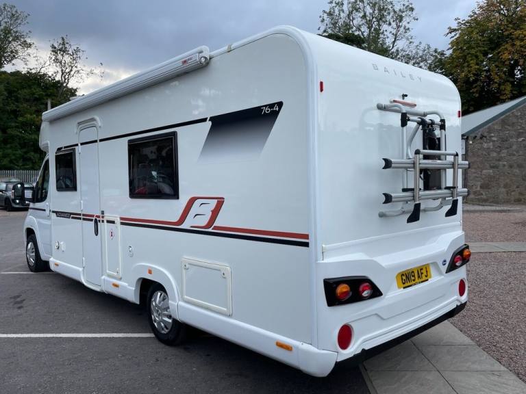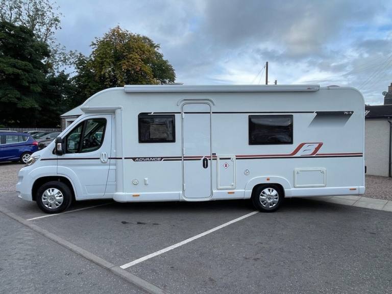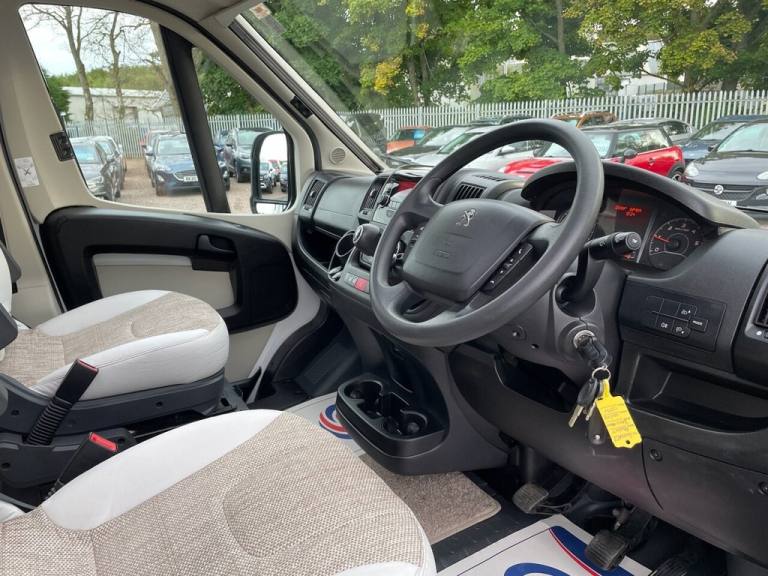 PEUGEOT BAILEY ADVANCE 76-4 2.0 BLUE HDI 335 4 BERTH ( END BEDROOM WITH FIXED DOUBLE BED, FRONT LOUNGE/DINETTE CONVERSION THAT FOLDS INTO DOUBLE BED, CENTRAL KITCHEN, ADJACENT END WASHROOM WITH SHOWER, 4 BERTH, 4 BELTED SEATS, ) Motorhome comes in Peugeot white cab paint with white body and advance 76-4 black and copper orange body decals, Silver Peugeot wheel trims, Bailey advance 76-4 body kit, Roof solar panel, Fiamma F45s side wind out awning, Side awning door light, Outside locker, Large front roof window, Fiamma fixed bike rack, Electric windows, Electric adjustable wing mirrors, Daytime lights, 6 speed manual gearbox, Central locking, Driver selector modes, Hill descent, LED trip computer speedometer display, Front cab blinds, 4 spoke steering wheel, Multi function steering wheel, Speed limiter, Cruise control, Climate control, Air conditioning, Peugeot Bluetooth stereo unit, Aux/Usb port, DAB radio, Bluetooth, Luxurious cream and beige Bailey advance 76-4 half leather and cloth front swivel captain chairs, Bailey advance 76-4 cloth seats through out, Front lounge/dinette with 4 seats with 4 seatbelts and folds into front large bed area, Truma heating system, Water heater, Large waste and fresh water tanks, On board blinds and fly screen, Skylights throughout, Loose lay removeable carpets, Central kitchen with 3 burner gas hobs and TFORD combined grill and oven, Built in Daewoo microwave, Dometic medium fixed on board fridge and freezer, Interior lighting with spotlights throughout, Wardrobe and various storage cupboards, Huge under bed storage area with external access, Adjacent wash room with shower and hand basin and TFORD electric flush cassette toilet, Gorgeous Bailey advance 76-4 interior features throughout, White gloss and light wood styling throughout, TV Ariel inputs, Rear bedroom with large fixed double bed, Huge under bed storage area, All of our vehicles are HPI checked with full report supplied at point of sale. Where applicable a new MOT will be completed prior to delivery. This Motorhome comes with free delivery anywhere in the uk. All various essential checks and tests will be done at the point of sale. To arrange a viewing of any of our motorhome & campervan stock please call to book viewings by appointment only at our main site at Craibstone business park, Bucksburn, Aberdeen, AB21 9TN.12V Power Socket, 12V Power Socket - Cargo Area, 220A Alternator, FM - DAB Radio, Halogen Headlamps with Clear Polycarbonate Lenses, High Level Third Brake Light, Power Assisted Steering - Variable, Remote Headlight Adjustment From Facia, Roof Mounted Aerial, Speakers x4, Speed Limiter, 2-Button Plip Remote Control Central Locking x 1, ABS - Anti Lock Braking System, Deadlocks, Digital Clock, Door Open Warning for Cab Doors, Drivers Airbag, EBFD - Electronic Brake Force Distribution, ESP - Electronic Stability Programme, Gear Shift Indicator, Lights On Warning, Oil Level Indicator, Rev Counter - Water Temperature Gauage - Fuel Gauge and Trip Computer, Side Light - Headlight - Indicator and Battery Charge Warning, Thatcham Rolling Transponder Immobiliser, Three x3 Point Inertia Reel - Height Adjustable Seatbelts, Visible VIN Number at Base of Windscreen, Central Dash Folding Clipboard, Conversion Interface Box, Drivers Seat Rake - Reach Height and Lumbar Adjustment and Armrest, Dual Cab Passenger Seat, Floor - Non Slip Hardwearing Front Cab Covering, Four Speed Heater Blower - Four Face Level Vents and Two Side Window Demisters, Front Door Armrests, Interior Light Front Cabin, Large Driver and Passenger Door Pockets, Open Storage on Passenger Side Lower Dash, Speedometer with Digital Odometer and Digital Trip Recorder, Steering Column - Reach Adjustment, Two Glove Boxes, Door Mirrors - Electrically Adjustable and Heated, Electric Front Windows, Filtering Tinted Glass, Rear Fog and Reversing Lights, Spare Wheel, Two Speed Intermittent Front Wipers