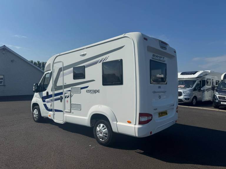 HERE WE HAVE FOR SALE A VERY NICE 2019 SWIFT ESCAPE COMPACT C404 4 BERTH END LOUNGE MOTORHOME WITH ONLY 8K MILES. FEATURES OF THIS MOTORHOME INCLUDE: BIKE RACK READY, MICROWAVE, DROP DOWN BED, END LOUNGE, SWIVEL SEATS AND FOUR BELTED SEATS.