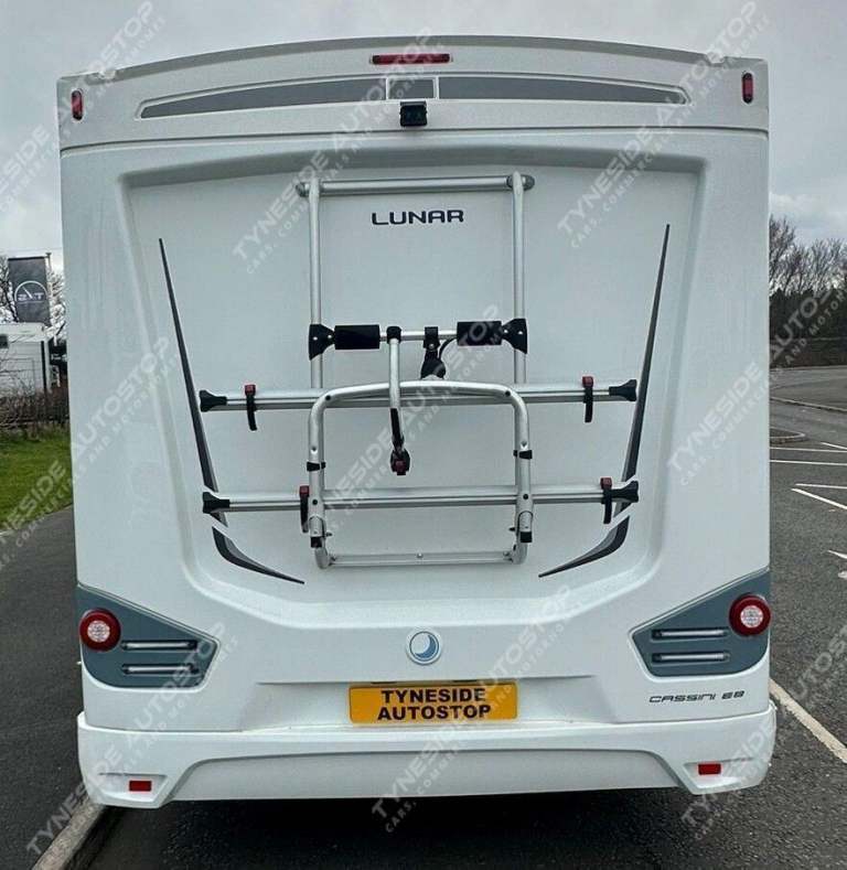 2020 LUNAR CASSINI EB 4 BERTH MOTORHOME, FANTASTIC SIZE MOTORHOME AND GREAT LAYOUT, TOWARDS THE REAR IS A LARGE FIXED DOUBLE BED THAT CAN ALSO BE USED AS TWO SINGLES, DIVIDING DOOR TO MAKE THE END BEDROOM PRIVATE, STORAGE UNDER THE FIXED BEDS, FRONT DINING AREA THAT CONVERTS INTO A BED TO COMPLETE THE 4 BERTH LAYOUT, TWO EXTRA TRAVEL SEATBELTS, FRONT SWIVEL SEATS, GOOD SIZE KITCHEN AREA WITH A UNDER BENCH FRIDGE WITH ICE BOX, BUILT IN OVEN, 3 GAS BURNER HOB, WORKTOP SPACE, SINK WITH A MIXER TAP, GREAT SIZE WASH ROOM WITH SEPARATE SHOWER CUBICLE, TOILET, SINK, VANITY MIRROR, TRUMA HEATING, LED LIGHTS, 3 PIN PLUGS, PRIVACY BLINDS, SKY LIGHT, GREAT STORAGE OPTIONS ALL ROUND, TV INPUTS, AWNING FITTED, BIKE RACK, TOUCH SCREEN MEDIA, AIR CON, 6 SPEED GEARBOX, CAMERA,