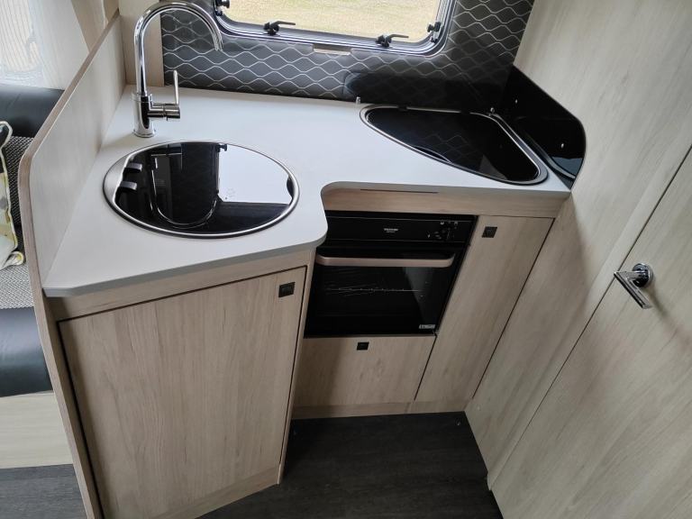Central Heating; End Kitchen; Cooker; Air Conditioning; 12V Lighting; External Side Lockers; Central Seating Group; Blinds; Grill; Awning; Solar System; Double Glazing; Mains Hookup; Separate Shower; Oven; Sink; 240V Lighting; AM/FM Stereo; Hand Washbasin