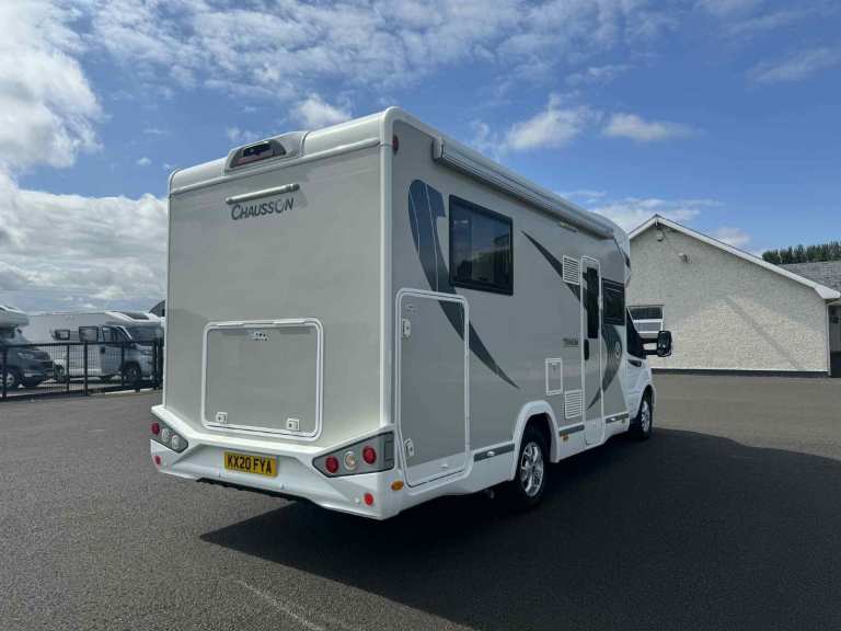 HERE WE HAVE FOR SALE A VERY NICE 2020 CHAUSSON TITANIUM 708 4 BERTH FIXED BED AUTOMATIC MOTORHOME WITH ONLY 10K MILES. FEATURES OF THIS MOTORHOME INCLUDE: AWNING, REAR GARAGE, REVERSING CAMERA, TWO TRAVELLING SEATS WITH BELTS, SWIVEL SEATS, SEPARATE SHOWER, AERIAL, REAR FIXED BED, DROP DOWN BED, SOLAR PANEL AND AUTOMATIC TRANSMISSION.