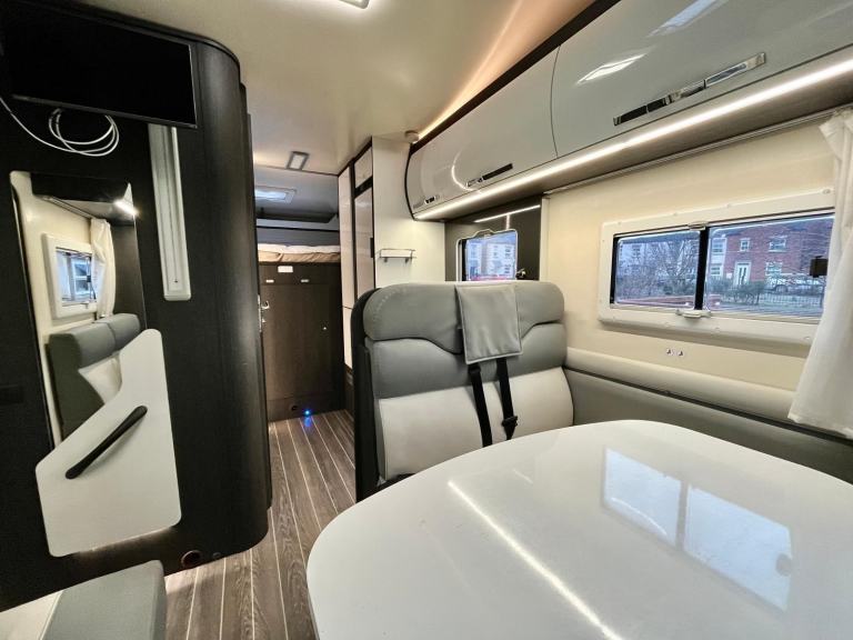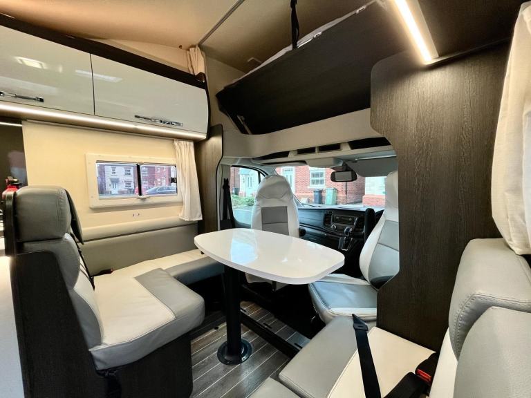 Motorhome Depot West Leicester are pleased to offer this Roller Team Zefiro Sport Edition 4 berth / 4 belt Automatic motorhome, first registered in March 2020 this van has covered only 51,967 miles from new and is based on the Ford Transit 130bhp Euro 6d engine mated to an automatic gearbox. New habitation check, service, wet-belt change and new tyres done this year. The van is 3500 KG so can be driven on a standard licence.This well equipped motorhome consists of a good sized front lounge and socialising area which can easily accommodate 6 people, along with 3 additional seat belts for passenger travel, the very large over cab bed is reached by a small ladder and the bed base can be pushed up to allow greater access to the cab area when not in use or if driving. The central kitchen area consists of a 3 burner hob, combination oven and grill, sink with hot/cold mixer tap, tall fridge with separate freezer compartment and good storage both above and below the worktop. The washroom is a good size and consists of a vanity sink and mixer, electric flush toilet, storage cupboards both above and below and a separate shower room. If your family into karting, quad-biking, motor sport, rafting or anything else that requires a LOT of storage, then this van could be just right for you. This coachbuilt motorhome has a huge garage. It’s a space that’s 1.27m wide and has huge twin loading doors each measuring 1.29m by 1.34m – plus access from inside the motorhome too, also inside the garage is a shower point to hose down whatever sports gear you’re carrying and the already vast headroom (1.44m) can be increased still further (up to 1.87m) by raising the bed above electrically.Motorhome SummaryRight-hand Drive, Automatic,Large garage areaGarage shower pointTow BarWind Out Canopy,Solar Panel,Habitation Refillable LPG,Reversing camera,4 cycle bike rack,Cab air-conditioning,2 x Swivel cab seats,Front lounge area,TV and aerialRear seat belts,Truma heating,Tall fridge with freezer compartment,Combination oven/grill,3 burner hob/sink,Toilet washroom/separate shower room