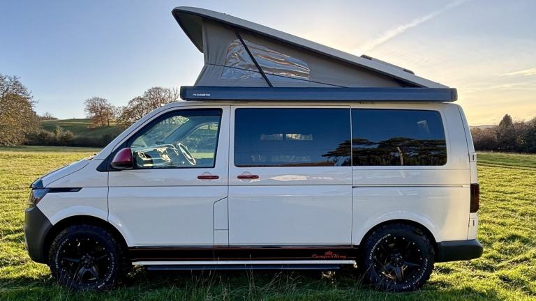 FOR SALE – 2020 VW T28 T6.1 CamperKing Saint Tropez32,000 Miles | Manual | 4 Berth | SWB | Full Service History MOT Until 15/05/2026Located near Malvern in Worcestershire, this 2020 VW T28 T6.1 CamperKing Saint Tropez is a superb example of a high-quality, well-equipped camper that’s ready for adventures. Showing just 32,000 miles with a full service history, it’s been extremely well maintained and is presented in excellent condition throughout.Powered by a smooth manual gearbox, this SWB Transporter is effortless to drive, whether you're touring the UK or using it day-to-day. Cab features include air conditioning, steering wheel controls, DAB with Apple/Android CarPlay, reversing camera, rear parking sensors, and a FF alarm for added security.Outside, it sits on striking black alloy wheels with matching black side running bars, giving it a sharp, modern look, while BF Goodrich all-terrain tyres and a towbar add extra capability and practicality.Inside, the CamperKing layout offers a comfortable and versatile 4-berth setup. The rock and roll bed sleeps two, with space for an additional two in the Skyline pop-top roof. With 5 seat belts, it’s perfect for families, couples, or anyone wanting a flexible travel companion.The well-designed kitchen area includes a 2-ring gas hob, grill, sink, and a fridge with freezer box, along with plenty of storage. The double passenger swivel seat provides excellent space utilisation with loads of storage beneath. Two removable tables make the interior ideal for dining or working, while full blackout curtains (including cab) and fitted carpets front and rear create a warm, comfortable living environment.For off-grid adventures, this van is properly equipped: a 100W solar panel, leisure battery, Webasto diesel heater, LED touch lights, USB points, and a wireless charging pad keep you powered and comfortable wherever you go. A wind-out awning extends your outdoor living space with [Website URL removed] also comes complete with a gas bottle, power lead, levelling ramps, water hose, and container, so you’re fully prepared from day one. A recent CamperKing habitation check gives added confidence.A beautifully finished, well-maintained CamperKing conversion with great spec, strong off-grid capability, and a fresh modern look — ready to drive away and enjoy.Viewings by Appointment Only – Contact Tony today by clicking "ENQUIRE NOW" for full details, a photo pack, and a video walkaround.Finance, Part Exchange & Warranty Options Available One-Month FREE Drive-Away Insurance All Vehicles HPI Checked – Report Available on Request