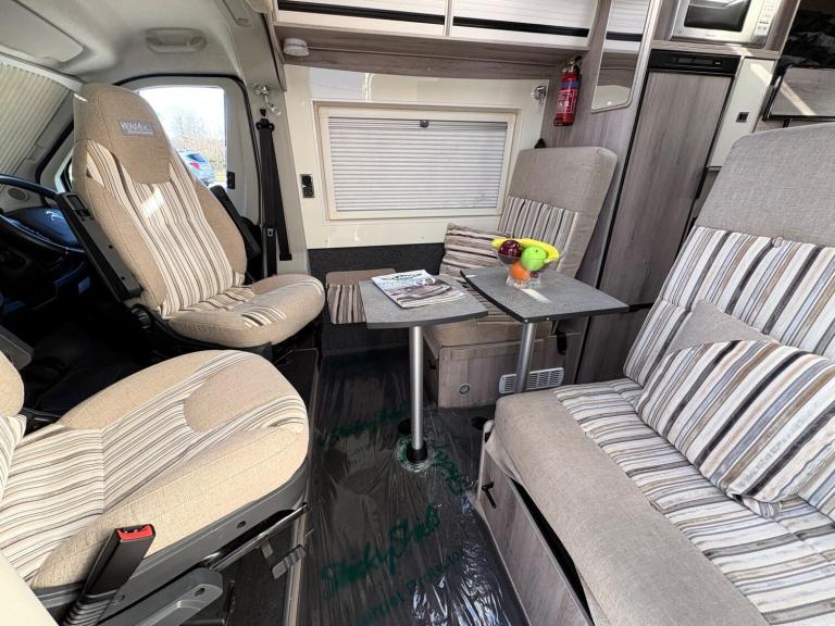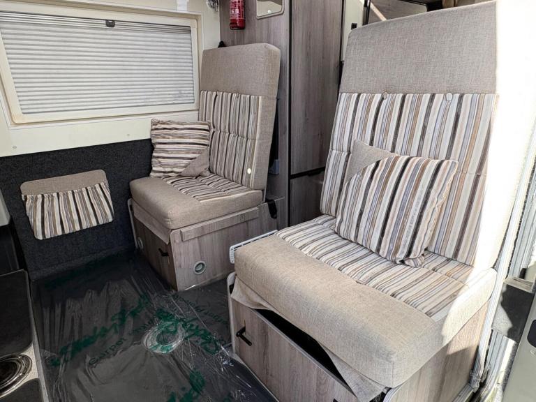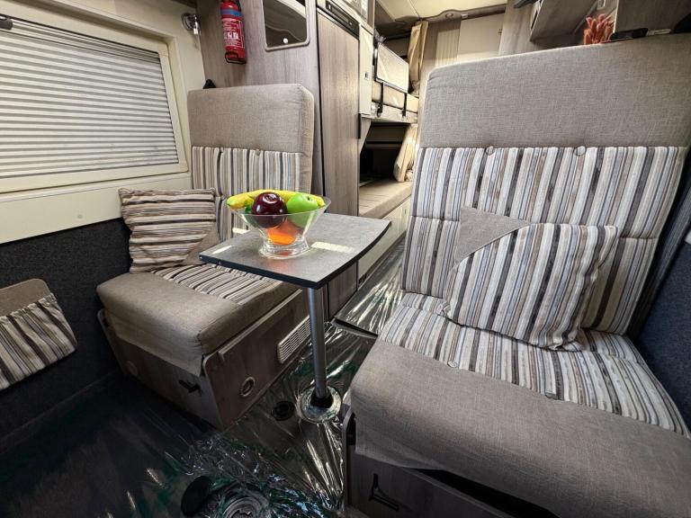 A low mileage example for the age with only 2 owners from new, a great family van that can seat and sleep 4 people, an end washroom layout with fixed bunk beds and a central seating area that converts in to a double bed. Will have a fresh habitation check as part of our internal preparation. Features include satellite navigation, reversing camera, bike rack, alloy wheels, microwave, oven, gill, hob, Truma combi boiler, toilet, shower and much more.For more information call 01522 246777.