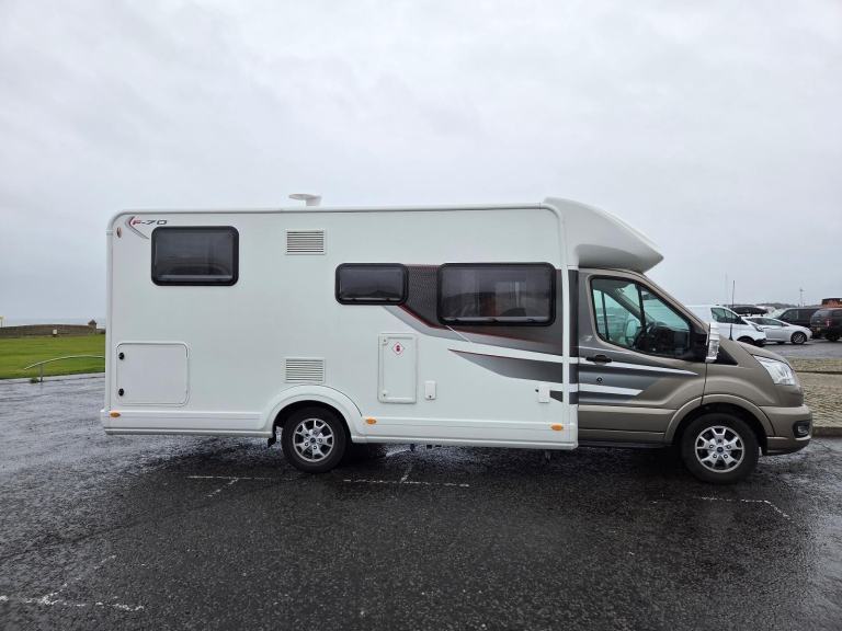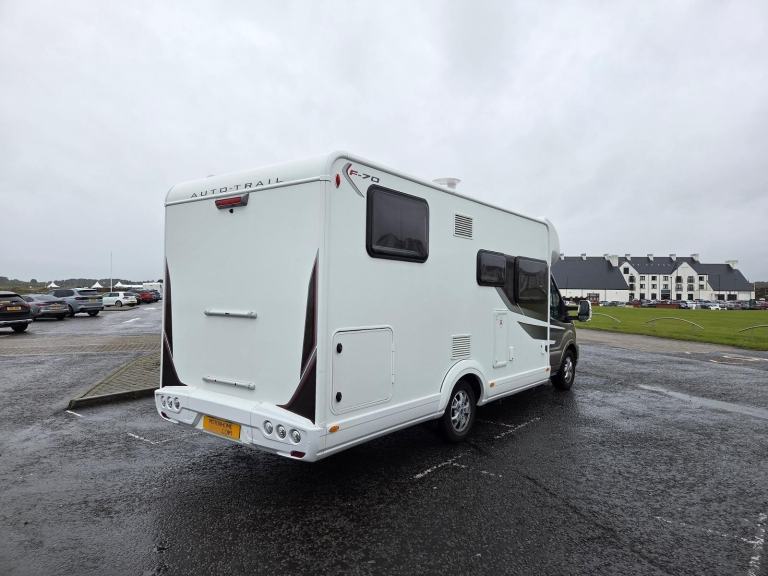 Motorhome Depot – Edinburgh, are pleased to present this excellent example of a one owner, 2021 Auto-Trail F-Line F70. It looks very stylish in its ‘two tone’ Bronze front and white coach finish which sets it apart from the crowd.Vehicle Location: StirlingViewings: Strictly by appointment The motorhome is built on the Ford 3,500kg chassis and is powered by a 2 litre Ford TDCi engine returning 170 bhp. This, coupled with the super smooth 6 speed automatic gear box leads to a refined driving experience. It has covered only 23,723 miles from new. The motorhome is Euro 6 compliant and comes with two travelling seat belts. The vehicle comes with a Service and Habitation check history. The cab area offers a great driving position with a panoramic command of the road. It features power steering, air conditioning, cruise control, electric mirrors, radio/media/infotainment system, satellite navigation, and two captain’s ‘rotating’ chairs. The outside of the motorhome is in excellent condition and this continues as you step inside which is light, airy and spacious. Behind the cab area you find a large seating area and space for dining or entertainment at the large movable table. It also has a very useful, small fixed and adjustable circular table. There is a 12v Avtex Smart TV fitted in the lounge area. The motorhome is fitted out with gas and electric heating and hot water system. From a security perspective, the vehicle is fitted with a Thatcham Certified - Sargent Cat 7 Tracker There is LED lighting throughout including reading lights. There is an abundance of USB charging points (8 no.) and 3 no. 13A single socket points. There are blinds and fly screens fitted on all windows, doors and skylights. The well equipped kitchen has an impressively large fridge/freezer, sink with hot and cold taps, worktop/food prep area, Thetford 3 burner gas hob, oven and grill. There is also a microwave oven and adequate cupboards and storage for all the necessities. Opposite the kitchen you find the spacious washroom which is fitted out with a toilet, sink, vanity mirror, cupboards and separate shower cubicle all in excellent condition. At the rear of the motorhome you find the large rear bed area which can be configured as two singles or a large double. There are under and over bed storage in this area. In the lounge area, the settees can be arranged to make another useful large single bed, again with useful under storage and high level cupboards above. Externally, we have a full length Fiamma ‘canopy style’ wind out awning, electrical hook up point, gas BBQ point, a very large rear garage - accessible from both sides, a reversing camera and a 100W solar panel. The design of this Auto-Trail F-Line F70, will particularly appeal to couples or solo travellers who enjoy space and comfort on their adventures. For further details and over 100 photos of this Motorhome, please contact the Seller.Finance is available for this vehicleWe offer a pick up and return service from local airport's, bus or train stationsTrade ins may be consideredAll money transactions are done through the HSBC intermediary holding bank account for security and peace of mind