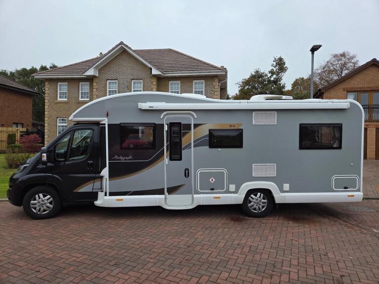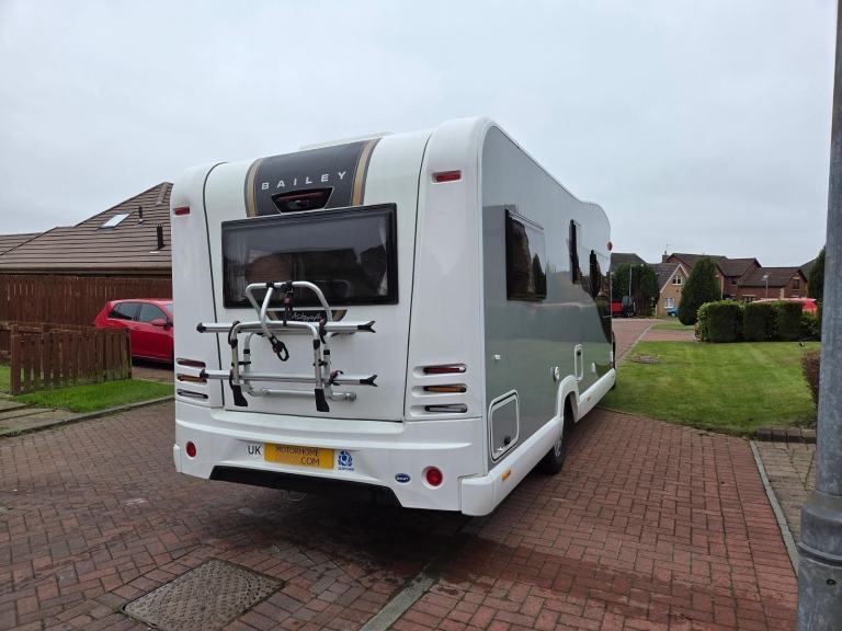 Motorhome Depot are pleased to present this excellent example of a one owner, 2021 Bailey Autograph 816 for sale. Vehicle Location: Motherwell, LanarkshireViewings: Strictly by appointmentThis very spacious and well-appointed 6 berth motorhome comes with 6 seat belts making it ideal for families who appreciate extra space and comfort on their travels. The motorhome looks very stylish with its two tone black and white colour scheme and gold decals. The motorhome is built on the Peugeot BLUEHDI 440 B/B chassis and is powered by a 2.2 litre 160 bhp Peugeot Turbo Diesel engine. This, coupled with the 6 speed manual gear box leads to a refined driving experience. It has covered only 8,900 miles from new. The motorhome is Euro 6 compliant and comes with six travelling seat belts. A ‘C’ class licence will be required to drive the vehicle as its MTPLM is 4,250 kg. The vehicle is MOT’d to March 2026 and comes with a full Service and Habitation Check History. The outside of the motorhome is in excellent condition and this continues as you step inside which is light, airy and spacious. The cab area offers a great driving position with a panoramic command of the road. It features power steering, air conditioning, cruise control, electric mirrors, radio/media/infotainment system, satellite navigation, Bluetooth and two captain’s ‘swivel’ chairs. Behind the cab area you will find double twin bench seating and space for dining or entertainment at the fixed table. A12v Avtex Smart TV fitted at high level adds to the ambience. The lounge has a ‘dual height’ drop down full size double bed. This gives fantastic flexibility and gives the lounge space the ability to accommodate various sleeping scenarios. The lounge seating area can be arranged to make another large double bed, again with useful under storage. The motorhome is fitted out with the very efficient Alde gas and electric heating and hot water system providing comfort throughout. Air conditioning in the habitation area adds to the comfort. There is LED lighting throughout including reading lights. There is an abundance of USB charging points (8 no.) and 3 no. 13A single socket points. There are blinds and fly screens fitted on all windows, doors and skylights. The well equipped kitchen has an impressively large fridge/freezer, a stainless steel sink with hot and cold taps, worktop/food prep area, 3 burner gas and 1 single induction hob, Thetford oven and grill. There is also a microwave oven and adequate cupboards and storage for all the necessities. Opposite the kitchen you find the spacious washroom which is fitted out with a toilet, sink, vanity mirror, cupboards and separate shower cubicle all in excellent condition. At the rear of the motorhome you find the very large ‘U-shaped’ lounge area that can easily accommodate 6 adults. When retiring for the evening, the seating converts into another very spacious double bed. There is another 12v Avtex Smart TV fitted in this area. There are generous high and low level storage areas as well as cupboards throughout the motorhome as you would expect. Externally, we have a full length Thule Omnistor ‘canopy style’ wind out awning, electrical hook up point, gas BBQ point, low-profile full width rear garage, reversing camera,100W solar panel, 13A single socket, SAT TV point, and a fitted bike rack. The design of this fantastic Bailey Autograph 816, will particularly appeal to families who enjoy space, comfort and privacy on their adventures. For further details and over 100 photos of this Motorhome, please contact the Seller.Finance is available for this vehicleWe offer a pick up and return service from local airport's, bus or train stationsTrade ins may be consideredAll money transactions are done through the HSBC intermediary holding bank account for security and peace of mind