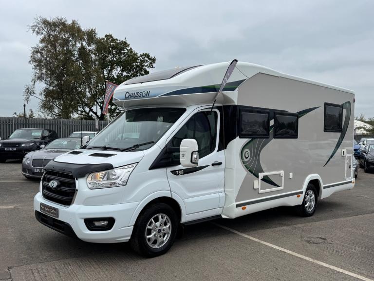Chausson 788 Titanium Premium 4-Berth Motorhome - 2021 9,300 Miles Parc Lane Cars Gosforth Parc Lane Cars of Gosforth proudly present this 2021 Chausson 788 Titanium Premium 4-berth motorhome, built on a Ford Transit chassis. With just 9,300 miles, this modern, stylish, and feature-rich motorhome is perfect for family adventures or touring in comfort. Key Features & Interior Specification Height-adjustable island bed over a spacious rear garage Smart lounge electric drop-down bed, accessible by ladder, retracts into roof when not in use Sofas on both sides transform into belted forward-facing travel seats Hydraulic self-levelling system for easy setup Swivel front cab seats for lounge integration Large touchscreen cab with DAB radio, Sat Nav, steering controls, and reverse camera Solar panel charging both main vehicle and leisure batteries Fiamma F45 awning Full air conditioning with remote control Satellite TV with self-seeking dish on the roof Thetford Triplex cooker with hotplate, combined oven & grill Thetford fridge freezer, cutlery drawer, and ample storage throughout Removable bike rack Adjustable table, toilet, and shower Vodafone tracker (subscription-based) Fire extinguisher, carbon monoxide and fire alarms Gas outlet, cruise control, habitation door with fly screen TV bracket, USB inputs, LED & reading lights, and numerous electrical sockets External garage space, LPG outlets, toilet waste outlet, and mains electrical plug-in Performance & Condition This low-mileage 2021 Chausson 788 Titanium Premium is beautifully presented and in excellent condition. Its spec-heavy layout, combined with practical living and touring features, makes it a rare find for serious motorhome enthusiasts. Key Details Mileage: 9,300 miles Year: 2021 Registration: NK21 FRV Gross Vehicle Weight: 3,500 kg Berths: 4 Chassis: Ford Transit Location: Parc Lane Cars, Gosforth, Newcastle upon Tyne Finance & Part Exchange Flexible finance options are available, and part exchanges are welcome. Contact Parc Lane Cars Gosforth to arrange a viewing or test drive of this Chausson 788 Titanium Premium 4-berth motorhome. With low mileage and extensive features, this motorhome is not to be missed. All specifications are listed as accurately as possible. Please confirm details before purchase. reg - NK21 FRV
