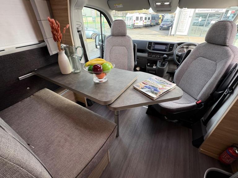 A stunning and very rare motorhome on a MAN cab with 4 wheel drive! an automatic gearbox makes for extremely easy driving. A 4 belt and 3 Berth layout with end fixed single beds that can be converted into a double over a large external storage locker, the nice sized front dining area converts to another bed and the swivel front seats means that it will comfortably seat 4. Features include air suspension, Oyster TV and satellite, reversing camera, Truma combi boiler, satellite navigation, solar panel, WIFI, toilet, shower and much more.For more information call 01522 246777.