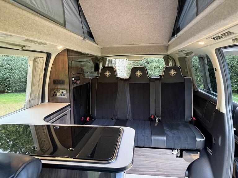 .EXCELLENT EXAMPLE of a 4 BERTH NORTHSTAR POP-TOP CONVERSION with 3-SEATER ROCK & ROLL BED - LPG CONVERSION for ENHANCED ECONOMY - GREAT SERVICE HISTORY FROM NEW - RECENT MOT & SERVICE - TWIN ELECTRIC SLIDING DOORS with ELECTRIC WINDOWS - KITCHEN AREA includes DOUBLE GAS HOB with SINK, PULL OUT DRAWER FRIDGE, AMPLE STORAGE and SPOT LIGHTING, MAINS ELECTRIC - SOLAR PANEL - ELECTRIC HOOK UP with LEISURE BATTERY - ELECTRIC HEATED BLACK LEATHER SEATS - 360 SURROUND CAMERAS with REVERSING CAMERA - DUAL CLIMATE CONTROL with AIR-CONDITIONING - ELECTRIC FOLDING MIRRORS