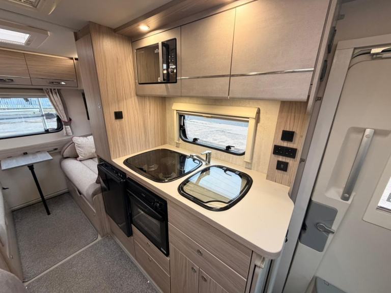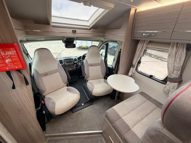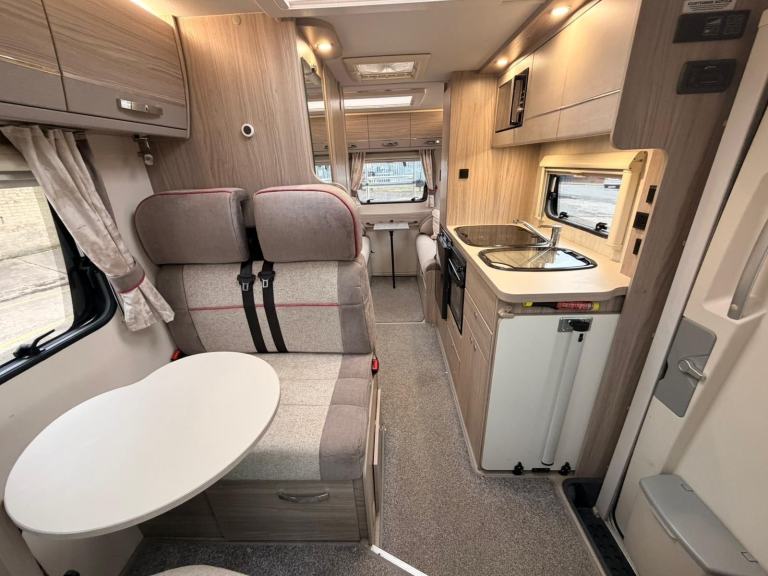 Key Features at a Glance:3 Berth | 4 Seatbelts | 2 Front Swivel Seats Euro 6 Peugeot Boxer Chassis | 15,400 MilesDometic 3-Way Fridge Freezer | Thetford Duplex Oven & Grill | 3 Gas + 1 Electric HobThetford Cassette Toilet | Whale Heating & Water System | Solar Fitted 6 USB Points | 6 x 240v Sockets | Dometic AwningAutowatch Alarm & Immobiliser | Alloy Wheels | Fresh & Waste Water Tanks