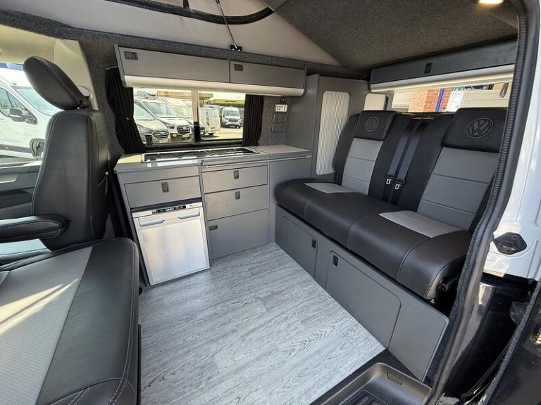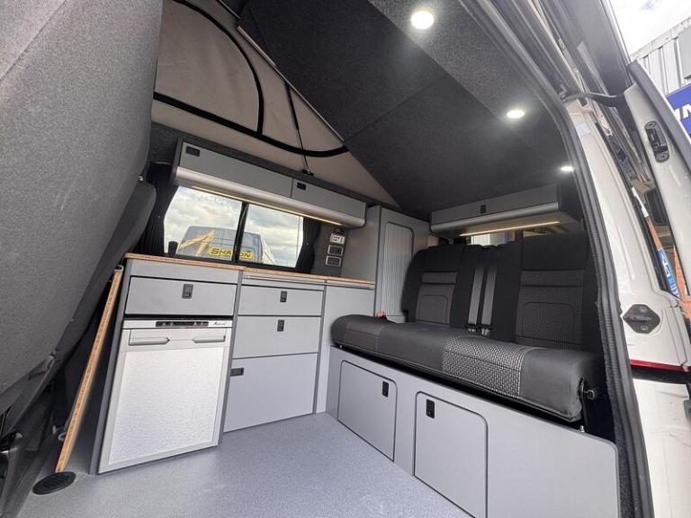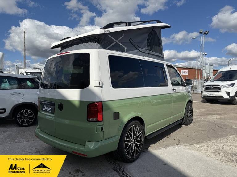X5 CAMPERS IN BUILD!!!CANDY WHITE/GREEN 2 TONE CAMPERKey Highlights:2 TONE FINISH - BRAND NEW CONVERSION - 5 YEAR ROOF WARRANTY - 1 YEAR MECHANICAL WARRANTY - 2 YEAR INTERNAL FURNITURE WARRANTY - EBERSPACHER DIESEL HEATER - GLAZED TAILGATE - RIB BED - LEATHER THROUGHOUT - BODY KIT & ALLOYS - OPENING CANVAS POP TOP (SCENIC VIEW) -- 5 LEATHER SEATS.4 BERTH 2 TONE TAILGATE CAMPER CAMPER VAN IDEAL LUXURY CAMPER THAT CAN BE USED FOR ALL PURPOSES. STAYCATION & FAMILY CAR - Volkswagen Transporter T6.1 SWB - CALL US TODAY FOR A VIRTUAL/PHYSICAL APPOINTMENT OR PERSONAL VIDEO.Camper Spec - 4 Berth with Diesel Heater, SKYLINE Scenic Canvass Pop Up Roof With Roof Bed and Opening Scenic Canvas (Includes 5 Year Warranty), Fully Glazed Side Privacy Windows x2 Sliding, RIB BED, Double Swivel Bench Seat, Full Leather, Complete Carpet Lining and Insulation, Leisure Battery, 140amp Split B2B Charger Relay, Grey Wood Effect Flooring, 4 LED Spot Lights + 2 Strip Lights Above Kitchen Units, Power Management System, Full Motorhome Approved Hibitation & Gas Check, Including 240v Battery Charger, External Hook-Up, x2 240v Sockets, 12v Power Outlet, USB Ports, SMEV 9222S Twin Gas Burning Hobs Including Tap and Sink, Gas Locker, Removable Water Tank, 50 Litre Dometic Fridge, Crash Tested RIB BED.PCP & 10 YEAR HP FINANCE AVAILABLE - AS LOW AS 9.9% APR - SPEAK TO US FOR YOUR PERSONAL FINANCE QUOTATION.While every effort has been made to ensure the accuracy of this information, however errors may occur, please check with a Salesperson.. Composition Colour DAB Plus Radio System with 6.5in Touch-Screen, Composition Colour DAB Plus Radio System with 6.5in Touch-Screen, eCall Emergency System, eCall Emergency System, Single 12V Outlets - Dashboard, Single 12V Outlets - Dashboard, Volkswagen App Connect, Volkswagen App Connect, Cruise Control with Speed Limiter, Cruise Control with Speed Limiter, Driver Alert System, Driver Alert System, Multi-Function Display Plus, Multi-Function Display Plus, 16in Steel Wheels - 20-Hole Style, 16in Steel Wheels - 20-Hole Style, Black Door Mirrors and Door Handles, Black Door Mirrors and Door Handles, Bumpers - Grey, Bumpers - Grey, Door Mirrors - Electrically Adjustable and Heated, Door Mirrors - Electrically Adjustable and Heated, Electric Windows - Front, Electric Windows - Front, Heat Insulating Glass in Cab, Heat Insulating Glass in Cab, Radiator Grille with Double Chrome Trim Strip, Radiator Grille with Double Chrome Trim Strip, Steel Spare Wheel with Original Equipment Tyre, Steel Spare Wheel with Original Equipment Tyre, Halogen Twin Headlights, Halogen Twin Headlights, Separate Daytime Running Lights, Separate Daytime Running Lights, Allergen Filter, Allergen Filter, Armrest - Drivers, Armrest - Drivers, Dash Panel with Open Stowage Compartments - Drink Holders and Lockable Glovebox, Dash Panel with Open Stowage Compartments - Drink Holders and Lockable Glovebox, Electronically Controlled Heating System, Electronically Controlled Heating System, Folding Grab Handles on Roof Frame, Folding Grab Handles on Roof Frame, Half-Height Side Trim Panels and Roof Trim Panels made of Hardboard, Half-Height Side Trim Panels and Roof Trim Panels made of Hardboard, Height Adjustment for Driver Seat in - Manual, Height Adjustment for Driver Seat in - Manual, Illuminated Instruments - Dimmable, Illuminated Instruments - Dimmable, Interior Lighting with LED Technology in Load and Passenger Compartment, Interior Lighting with LED Technology in Load and Passenger Compartment, Leather-Wrapped Multi-Function Steering Wheel, Leather-Wrapped Multi-Function Steering Wheel, LED Interior Lighting - 2 Reading Lights in the Roof Console, LED Interior Lighting - 2 Reading Lights in the Roof Console, Load-lashing Rings - Six Folding, Load-lashing Rings - Six Folding, Manual Sliding Door Passenger Side, Manual Sliding Door Passenger Side, Rear Wing Doors Without Windows, Rear Wing Doors Without Windows, Rubber Floor Covering in Cab, Rubber Floor Covering in Cab, Seats - Dual Passenger in Cab, Seats - Dual Passenger in Cab, Sun Visor with Ticket Holder on Drivers Side and Airbag Label on Passengers Side, Sun Visor with Ticket Holder on Drivers Side and Airbag Label on Passengers Side, Tool Kit and Jack, Tool Kit and Jack, Electromechanical Speed Sensitive Power Steering - Height and Longitudinally Adjustable Steering Column, Electromechanical Speed Sensitive Power Steering - Height and Longitudinally Adjustable Steering Column, ABS - Anti-Lock Braking System, ABS - Anti-Lock Braking System, ASR - Anti Slip Regulation, ASR - Anti Slip Regulation, BAS - Brake Assist System, BAS - Brake Assist System, Crosswind Assist, Crosswind Assist, Drivers and Front Passengers Airbags with Front Passenger Airbag Deactivation Switch, Drivers and Front Passengers Airbags with Front Passenger Airbag Deactivation Switch, EDL - Electronic Differential Lock, EDL - Electronic Differential Lock, Electronic Engine Immobiliser, Electronic Engine