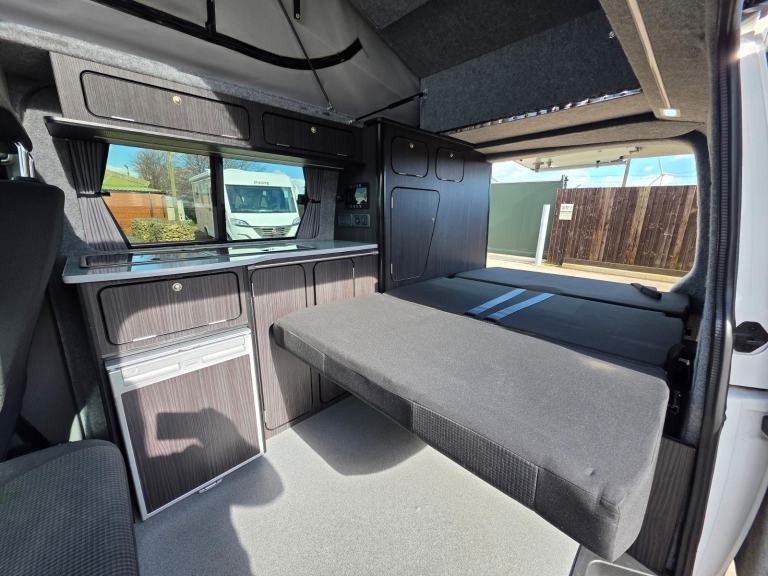 Motorhome Depot are pleased to present this 2021 VW Transporter T6.1 SWB professional van conversion that is a 4 berth 5 belt camper. This was converted by the well-respected PF Jones of Stoke On Trent, who specialise in high quality bespoke conversions and the quality can be seen throughout this camper, from the top of the range Skyline Aurora Scenic Pop Top, top of the range Rib Bed to the Autoerm Diesel heater and many more features. This vehicle has FULL SERVICE HISTORY from VW, is powered by a 2.0 Litre Diesel Engine with 5 Speed Manual Transmission. Stylish and sleek this conversion is one that will not limit you on where to go and what routes to take. A perfect choice if you are also looking for something that can be also used as a leisure vehicle. You can also sleep up to 4 people comfortably and travel up to 5 people at any one time. The Double bed in the van is one that is made with ease. You also have the pop top that offers you more space and a second sleeping area. The spec on this VW is high and includes; Cab Air Con, Rear Parking Sensors, 18” Wolfrace Alloy Wheels, Diesel Heating (Autotherm), USB Points in the Front and Rear, 230 Electric Hook Up, Double Swivel Seat that can be swivelled with ease and face out of the sliding door, 2 Sets of Keys, Bluetooth and Android Auto and Apple Car Play, , Rib Bed that allows different elevated positions, Pop Top Roof, Gas Hob Rings x2, Cold Water Sink, Table for inside, Electric Windows, Fridge with Freezer Space, Cruise Control, 230v Points in the Rear and more! In short, this is a stunning camper, done to a high standard with some very rare and desirable features on both the conversion and the vehicle itself. HPI Clear MOT 14-11-2026 Full VW Service History Location – Farnsfield, Mansfield To see a more extensive file and a walk round video please call Byran on [Phone number removed]or email [Email address removed. Click Email button to contact us.] I can offer free 31 day drive away insurance with this motorhome and can deal with part exchanges and anyone requiring finance. Please note, this vehicle is not a brokerage unit and as such means that it is compliant with the Consumer Rights Act 2015.