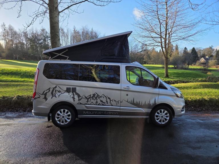 Motorhome Depot - Edinburgh, are delighted to present this ‘as new’ two owner, 2022 Ford Transit Limited 280 Custom Eco Blue Pop-Top Campervan for sale. This campervan, comes with a pop-top roof and is the perfect vehicle for your next adventure. With accommodation for up to 4 people, it provides a comfortable and cosy space to relax and unwind after a day of exploring. Powered by the 128 bhp 2 litre TDI engine and manual gearbox, with just 4,754 miles on the clock, it provides an exceptional driving experience. This Euro 6 compliant campervan comes with a full service history and current MOT valid through to January 2027. The camper comes in stylish silver bodywork, black decals and alloy wheels which set of the van perfectly. Key Features: Body: Short Wheel Base GVW: 2800kg L: 4.9m W: 1.98m Pop Top Roof: Vinyl windows and roll down blinds. Easy lift upper double bed platform in roof space, sleeps two. Fit Out: Tasteful conversion by Rock n Roll Campers Newcastle. Fixtures, fittings and fabrics are all first class providing a high quality feel. Total of five seatbelts, three in front, two in rear. Cab: Heated seats, parking sensors, air conditioning, DAB touchscreen radio, Bluetooth, USB ports, power steering & cruise control. Under seat storage, privacy window blinds. Living: Forward facing double leather seats with belts. Seats convert to a full size ‘Rock & Roll’ double bed with under storage. Foldable dining/work table, ample storage space, LED lighting and shelving. Kitchen: Double burner gas hob, fridge/freezer and wash hand basin. Power: Electric hook up point, 100watt solar panel, leisure battery, consumer unit, control panel, 13A sockets, USB ports and LED lighting Comfort: Thermostatically controlled Diesel blown air heating system. Externally, the van also benefits from a fitted awning rail and detachable towbar. A four way bike rack also comes with the sale. Vehicle Location: Melrose, Roxburghshire Viewings: Strictly by appointment For further details and an additional 60 photographs, please contact the Seller. Finance is available for this vehicle We offer a pick up and return service from local airport's, bus or train stations Trade ins may be considered All money transactions are done through the HSBC intermediary holding bank account for security and peace of mind