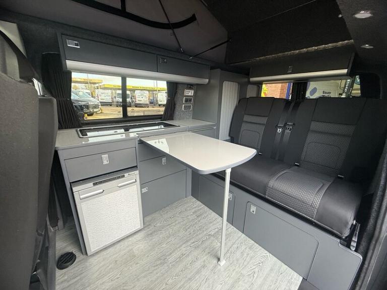 X9 CAMPERS IN BUILD!!!Key Highlights:INDIUM GREY CAMPER - BRAND NEW CONVERSION - 5 YEAR ROOF WARRANTY - 1 YEAR MECHANICAL WARRANTY - 2 YEAR INTERNAL FURNITURE WARRANTY - EBERSPACHER DIESEL HEATER - GLAZED TAILGATE - RIB BED - BODY KIT & ALLOYS - OPENING CANVAS POP TOP (SCENIC VIEW) -- 5 BELTED SEATS.4 BERTH CAMPER CAMPER VAN IDEAL LUXURY CAMPER THAT CAN BE USED FOR ALL PURPOSES. STAYCATION & FAMILY CAR - Volkswagen Transporter T6.1 SWB - CALL US TODAY FOR A VIRTUAL/PHYSICAL APPOINTMENT OR PERSONAL VIDEO.Camper Spec - 4 Berth with Diesel Heater, SKYLINE Scenic Canvass Pop Up Roof With Roof Bed and Opening Scenic Canvas (Includes 5 Year Warranty), Fully Glazed Side Privacy Windows x2 Sliding, RIB BED, Double Swivel Bench Seat, Full Leather, Complete Carpet Lining and Insulation, Leisure Battery, 140amp Split B2B Charger Relay, Grey Wood Effect Flooring, 4 LED Spot Lights + 2 Strip Lights Above Kitchen Units, Power Management System, Full Motorhome Approved Hibitation & Gas Check, Including 240v Battery Charger, External Hook-Up, x2 240v Sockets, 12v Power Outlet, USB Ports, SMEV 9222S Twin Gas Burning Hobs Including Tap and Sink, Gas Locker, Removable Water Tank, 50 Litre Dometic Fridge, Crash Tested RIB BED.PCP & 10 YEAR HP FINANCE AVAILABLE - AS LOW AS 9.9% APR - SPEAK TO US FOR YOUR PERSONAL FINANCE QUOTATION.While every effort has been made to ensure the accuracy of this information, however errors may occur, please check with a Salesperson.. 12V Socket - Additional, 12V Socket - Additional, 12V Socket - Front, 12V Socket - Front, App-Connect, App-Connect, Composition Colour DAB Plus Radio System with 6.5in Touch-Screen, Composition Colour DAB Plus Radio System with 6.5in Touch-Screen, Multi-Function Display Plus with Black and White Display, Multi-Function Display Plus with Black and White Display, Smartphone Interface, Smartphone Interface, ACC - Adaptive Cruise Control, ACC - Adaptive Cruise Control, Driver Alert System, Driver Alert System, Forward Collision Warning with Autonomous Emergency Braking, Forward Collision Warning with Autonomous Emergency Braking, Parking Sensors - Front and Rear, Parking Sensors - Front and Rear, 16in Alloy Wheels - Clayton, 16in Alloy Wheels - Clayton, Body-Coloured Door Mirror Housings and Handles - Front and Rear Bumpers, Body-Coloured Door Mirror Housings and Handles - Front and Rear Bumpers, Door Mirrors - Heated - Power Adjustable and Power Folding, Door Mirrors - Heated - Power Adjustable and Power Folding, Electric Windows - Front, Electric Windows - Front, Exterior Package, Exterior Package, Heat Insulating Glass - Green in Cab and Passenger-Load Compartment, Heat Insulating Glass - Green in Cab and Passenger-Load Compartment, Heated Front Windscreen, Heated Front Windscreen, Locking Wheel Bolts, Locking Wheel Bolts, Radiator Grille with Double Chrome Trim Strip, Radiator Grille with Double Chrome Trim Strip, Steel Spare Wheel with Original Equipment Tyre, Steel Spare Wheel with Original Equipment Tyre, Automatic Headlight Activation with Daytime Running Lights - Leaving Home - Manual Coming Home Function, Automatic Headlight Activation with Daytime Running Lights - Leaving Home - Manual Coming Home Function, Front Fog Lights with Cornering Lights, Front Fog Lights with Cornering Lights, Halogen Twin Headlights, Halogen Twin Headlights, Air Conditioning - Electronically Controlled, Air Conditioning - Electronically Controlled, Allergen Filter, Allergen Filter, Armrest - Drivers, Armrest - Drivers, Automatic Dimming Rear View Mirror, Automatic Dimming Rear View Mirror, Comfort Pack, Comfort Pack, Dash Panel with Open Stowage Compartments - Drink Holders and Lockable Glovebox, Dash Panel with Open Stowage Compartments - Drink Holders and Lockable Glovebox, Dashboard - Dimmable Illumination, Dashboard - Dimmable Illumination, Drivers Seat with Armrest - Height Adjustment and 4-Way Manual Lumbar Support, Drivers Seat with Armrest - Height Adjustment and 4-Way Manual Lumbar Support, Electronically Controlled Heating System, Electronically Controlled Heating System, Folding Grab Handles on Roof Frame, Folding Grab Handles on Roof Frame, Folding Lashing Rings for Load Restraint System - Reinforced, Folding Lashing Rings for Load Restraint System - Reinforced, Front Windshield Wipers with Intermittent Operation and Rain Sensor, Front Windshield Wipers with Intermittent Operation and Rain Sensor, Full Height Steel Bulkhead without Window, Full Height Steel Bulkhead without Window, Glove Compartment with Illumination, Glove Compartment with Illumination, Half-Height Side Trim Panels and Roof Trim Panels made of Hardboard, Half-Height Side Trim Panels and Roof Trim Panels made of Hardboard, Heavy-Duty Tool Kit and Jack, Heavy-Duty Tool Kit and Jack, Interior Lighting with LED Technology in Load Compartment, Interior Lighting with LED Technology in Load Compartment, Leather Trimmed Multi-Function Steering Wheel with Height and Longitudinal Adjustment, Leather Trimmed