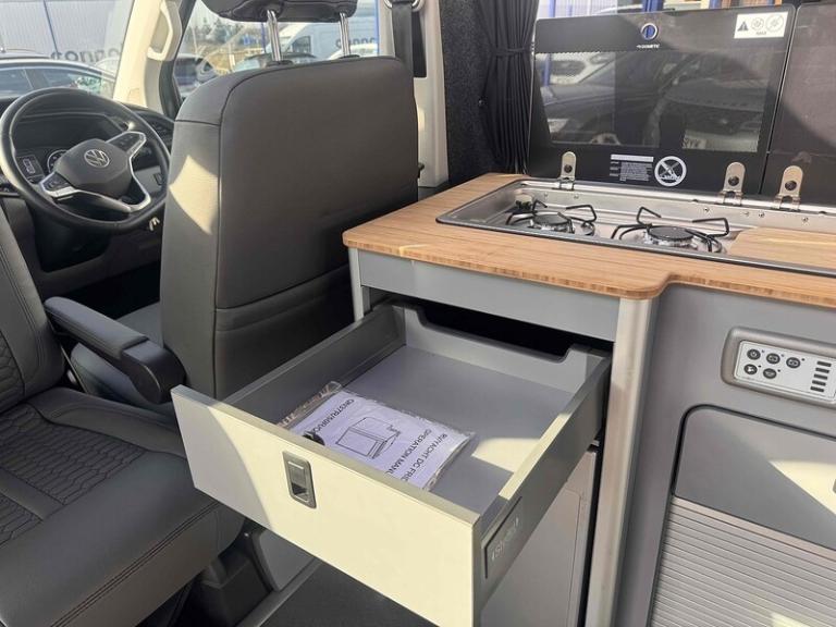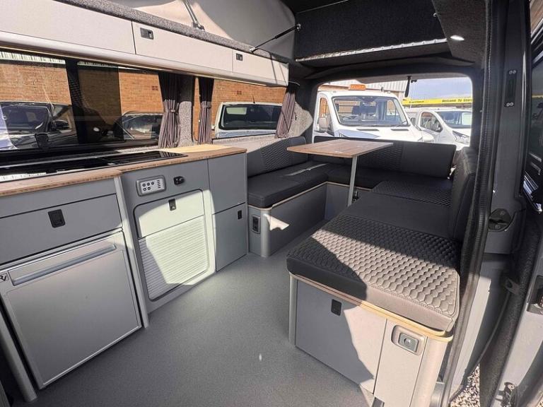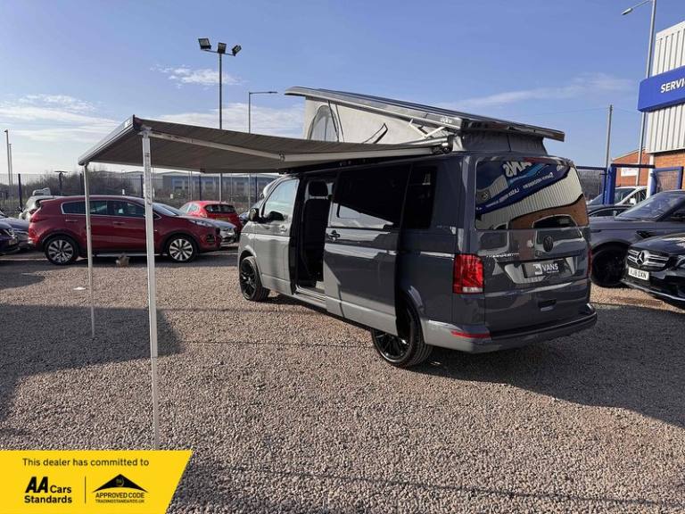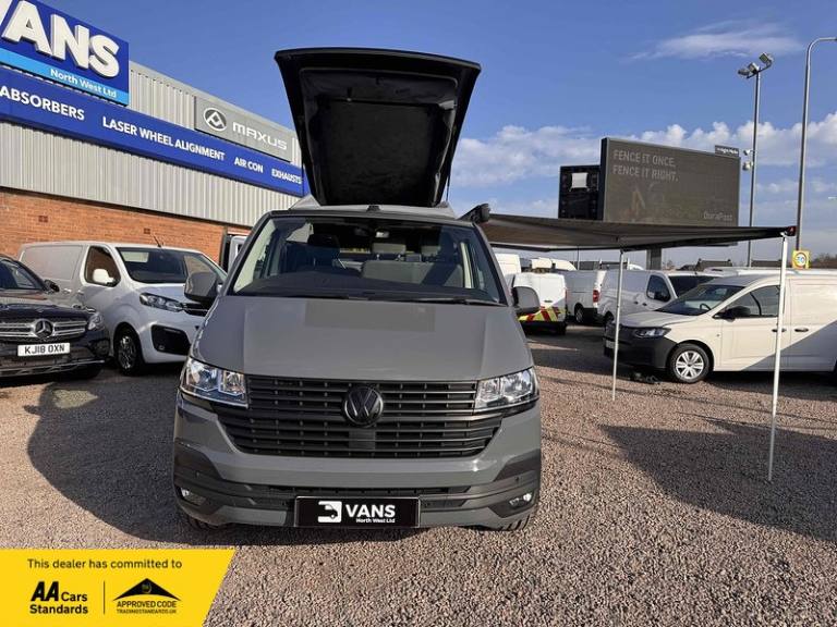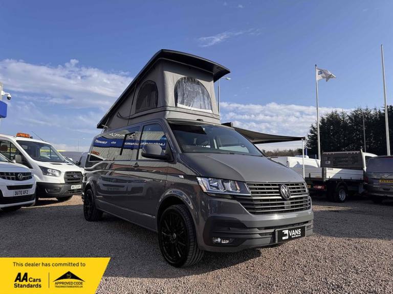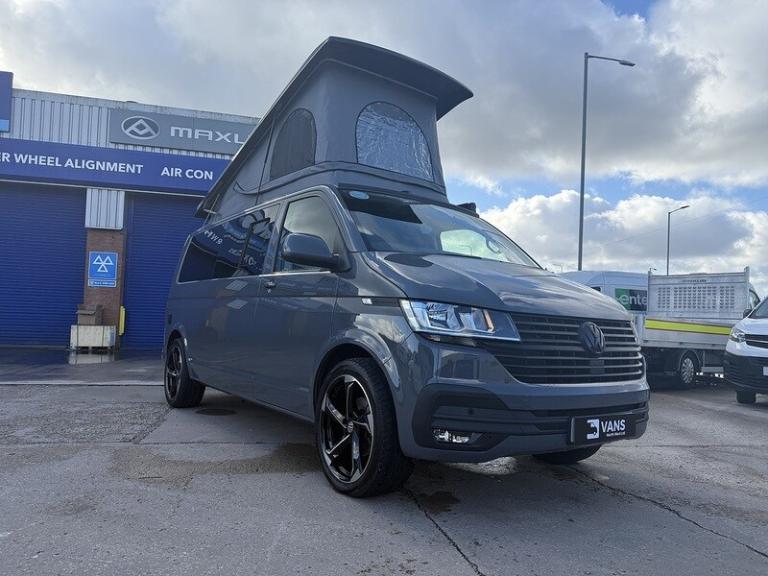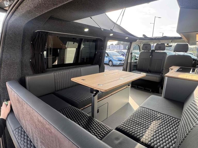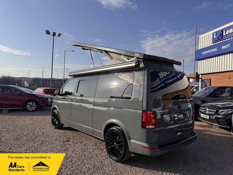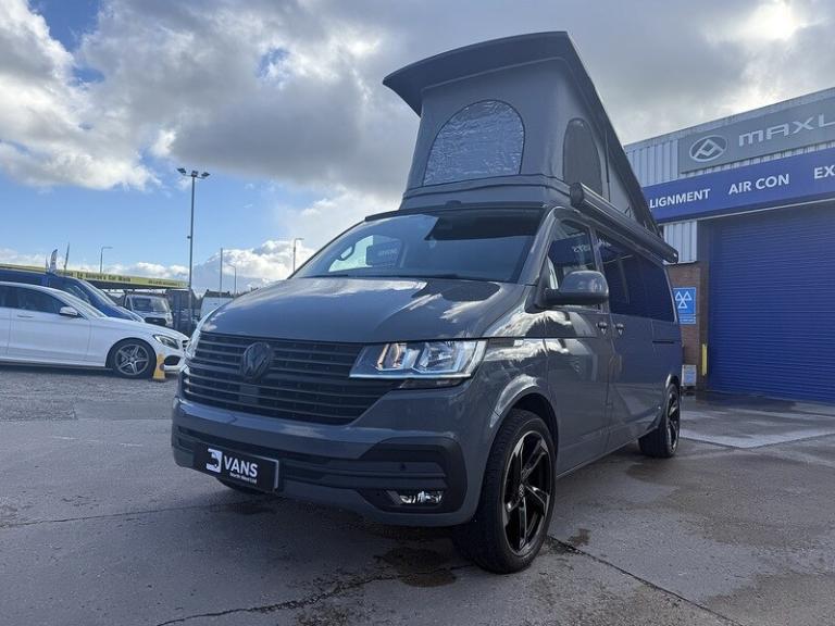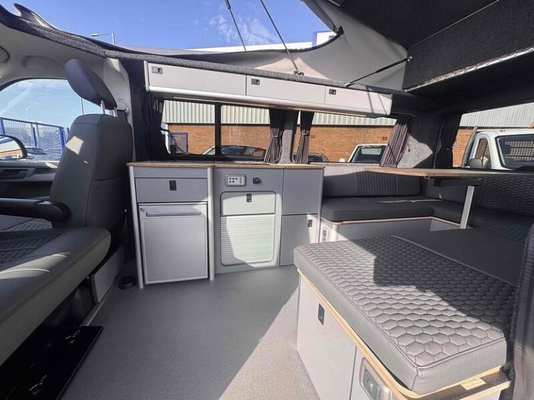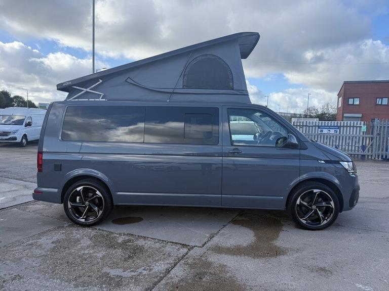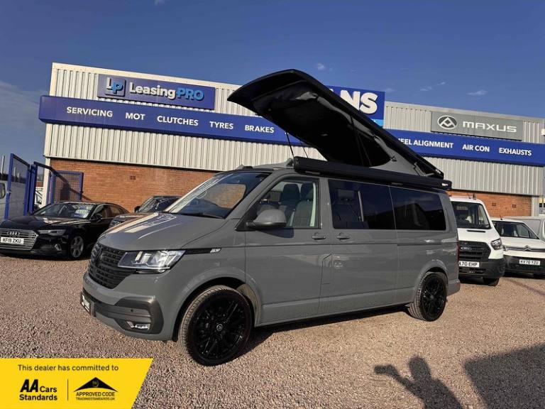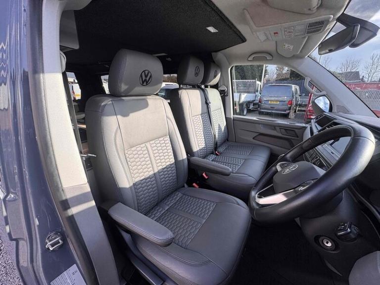 PURE GREY - LEATHER U SHAPE BUILD - GLAZED TAILGATE - SOLAR - DIESEL HEATERKey Highlights:BRAND NEW CONVERSION - HONEYCOMB STITCHING LEATHER STITCHED U SHAPE - 5 YEAR ROOF WARRANTY - 2 YEAR MECHANICAL WARRANTY - 2 YEAR INTERNAL FURNITURE WARRANTY - SOLAR PANELS - EBERSPACHER DIESEL HEATER - GLAZED TAILGATE -FIAMMA AWNING - LEATHER THROUGHOUT - UPGRADED 20 INCH ALLOYS - SKYLINE POP TOP OPENING CANVAS (SCENIC VIEW)4 BERTH 2 TONE TAILGATE CAMPER CAMPER VAN IDEAL LUXURY CAMPER THAT CAN BE USED FOR ALL PURPOSES. STAYCATION & FAMILY CAR - Volkswagen Transporter T6.1 SWB - CALL US TODAY FOR A VIRTUAL/PHYSICAL APPOINTMENT OR PERSONAL VIDEO.Camper Spec - 4 Berth with EBERSPACHER Diesel Heater, SKYLINE Scenic Canvass Pop Up Roof With Roof Bed and Opening Scenic Canvas (Includes 5 Year Warranty), Fully Glazed Side Privacy Windows x2 Sliding, RIB BED, Double Swivel Bench Seat, Full Leather, Complete Carpet Lining and Insulation, Leisure Battery, 140amp Split B2B Charger Relay, Grey Wood Effect Flooring, 4 LED Spot Lights + 2 Strip Lights Above Kitchen Units, Power Management System, Full Motorhome Approved Hibitation & Gas Check, Including 240v Battery Charger, External Hook-Up, x2 240v Sockets, 12v Power Outlet, USB Ports, SMEV 9222S Twin Gas Burning Hobs Including Tap and Sink, Gas Locker, Removable Water Tank, 50 Litre Dometic Fridge, Crash Tested RIB BED.PCP & 10 YEAR HP FINANCE AVAILABLE - AS LOW AS 9.9% APR - SPEAK TO US FOR YOUR PERSONAL FINANCE QUOTATION.While every effort has been made to ensure the accuracy of this information, however errors may occur, please check with a Salesperson.. 12V Socket - Additional, 12V Socket - Front, App-Connect, Composition Colour DAB Plus Radio System with 6.5in Touch-Screen, Multi-Function Display Plus with Black and White Display, ACC - Adaptive Cruise Control, Driver Alert System, Parking Sensors - Front and Rear, 16in Alloy Wheels - Clayton, Body-Coloured Door Mirror Housings and Handles - Front and Rear Bumpers, Door Mirrors - Heated - Power Adjustable and Power Folding, Electric Windows - Front, Exterior Package, Heat Insulating Glass - Green in Cab and Passenger-Load Compartment, Heated Front Windscreen, Locking Wheel Bolts, Radiator Grille with Double Chrome Trim Strip, Steel Spare Wheel with Original Equipment Tyre, Automatic Headlight Activation with Daytime Running Lights - Leaving Home - Manual Coming Home Function, Front Fog Lights with Cornering Lights, Halogen Twin Headlights, Air Conditioning - Electronically Controlled, Allergen Filter, Armrest - Drivers, Automatic Dimming Rear View Mirror, Comfort Pack, Dash Panel with Open Stowage Compartments - Drink Holders and Lockable Glovebox, Dashboard - Dimmable Illumination, Drivers Seat with Armrest - Height Adjustment and 4-Way Manual Lumbar Support, Electronically Controlled Heating System, Folding Grab Handles on Roof Frame, Folding Lashing Rings for Load Restraint System - Reinforced, Front Windshield Wipers with Intermittent Operation and Rain Sensor, Full Height Steel Bulkhead without Window, Glove Compartment with Illumination, Half-Height Side Trim Panels and Roof Trim Panels made of Hardboard, Interior Lighting with LED Technology in Load and Passenger Compartment, Leather Trimmed Multi-Function Steering Wheel with Height and Longitudinal Adjustment, LED Interior Lighting - 2 Reading Lights in the Roof Console, Manual Sliding Door Passenger Side, Rear Wing Doors Without Windows, Rubber Floor Covering in Cab, Seats - Dual Passenger in Cab, Sun Visors with Mirror - Airbag Label on Front Passenger Sun Visor, Tool Kit and Jack, Power Steering - Electromechanical, ABS - Anti-Lock Braking System, Anti-Theft Alarm System with Interior Monitoring in Cab - Backup Horn and Tow-Away Protection, ASR - Anti Slip Regulation, Automatic Post-Collision Braking System, BAS - Brake Assist System, Crosswind Assist, Drivers and Front Passengers Airbags with Front Passenger Airbag Deactivation Switch, EDL - Electronic Differential Lock, Electronic Engine Immobiliser, ESP - Electronic Stability Programme, Hill Start Assist, Remote Central Locking with 2 Remote Folding Keys, Single Tone Horn, Warning Light and Buzzer for Front Seat Belt if Unfastened