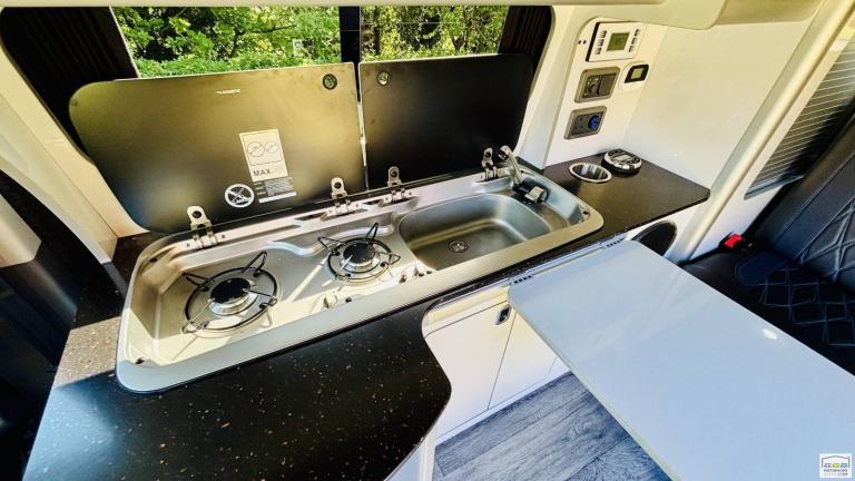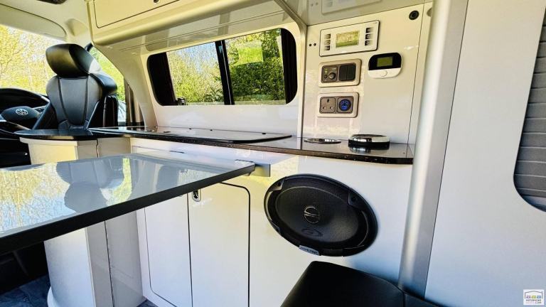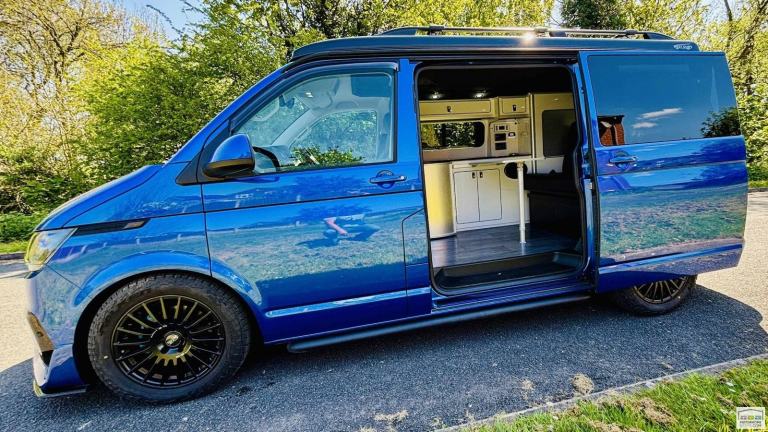 VW Transporter T6.1 Highline Campervan (2023 / 73 Plate) – High Spec | Air Suspension | 4 BerthLocated near Stafford, Staffordshire, Motorhome Depot are proud to present this exceptional 2023 (73 plate) VW Transporter T6.1 T28 Highline Campervan – a truly high-end camper that stands out from the crowd with its incredible specification and attention to detail.Finished in blue and having covered just 9,900 miles, this is a 4 berth, 4 seatbelt campervan that blends everyday usability with serious touring capability. It comes with full VW service history, with the last service carried out recently at 9,648 miles, and is based on the desirable Highline model, offering a refined driving experience with features such as adaptive cruise control, heated front windscreen, sat nav, auto lights and wipers, Apple CarPlay/Android Auto, DAB radio, reversing camera and front and rear parking sensors.Inside, the conversion has been completed to a very high standard, featuring an Alpine Camper Design kitchen and storage system, along with an M1 tested Rock ‘n’ Roll bed with leather upholstery and a large integrated storage drawer. The layout is both stylish and practical, also benefiting from a 12V compressor fridge, Dometic combined sink and 2-ring gas hob, black-out curtains, external water fill point, 230V hook-up and an underslung 50L water tank.Up top, the Westdubs pop-top roof with full front zip opening and mattress provides additional sleeping space, making this a versatile setup for couples or families. Both front captain’s seats swivel to create a sociable lounge area.The electrical system is a real highlight, built using premium Victron components, including a 1200W inverter, solar controller and DC-DC charger, supported by a 150W solar panel. There’s also a diesel heater for year-round comfort, along with CBE control systems and genuine VW LED interior mood lighting, plus additional blue ambient lighting in the door cards and footwell.This camper has also been upgraded mechanically and cosmetically to an exceptional level. It features So-Low air suspension front and rear, controlled via a P1 Air management system, allowing each corner to be adjusted independently. This setup is supported by twin compressors and a 4-gallon air tank, offering both improved ride quality and an incredible stance.Externally, it looks just as impressive, sitting on OZ Racing alloys with Falken Wildpeak all-terrain tyres, complemented by Leighton front styling including grille and body kit, rear spoiler, roof bars and black side rails. LED lighting upgrades front and rear, including DRLs with sequential indicators, complete the look.Further enhancements include a Tow-Trust detachable swan neck towbar, folding mirrors, awning rail, full Dodo Mat soundproofing and insulation throughout, and a high-end Alpine audio upgrade with 6-channel DSP amplifier, subwoofer and speakers.This is not your average campervan – it’s a carefully specified, no-expense-spared example with an outstanding level of upgrades, ideal for someone looking for something truly special.Please feel free to contact Tony by clicking “ENQUIRE NOW” for further information, a comprehensive image file and video walk around.Viewings are by appointment only, so please get in touch today to arrange yours.As part of Motorhome Depot, we offer finance, part exchange and warranty options, along with one month FREE drive away insurance. All vehicles are HPI checked, with a report available upon request.