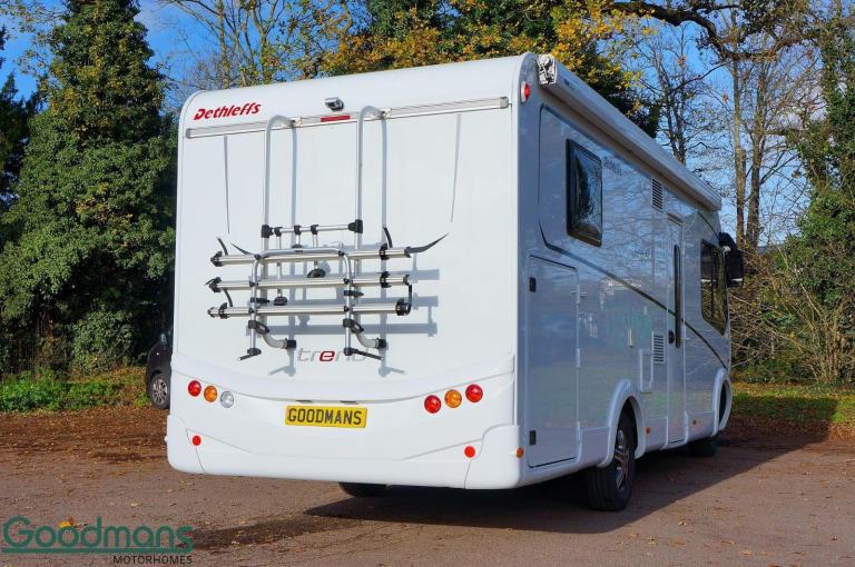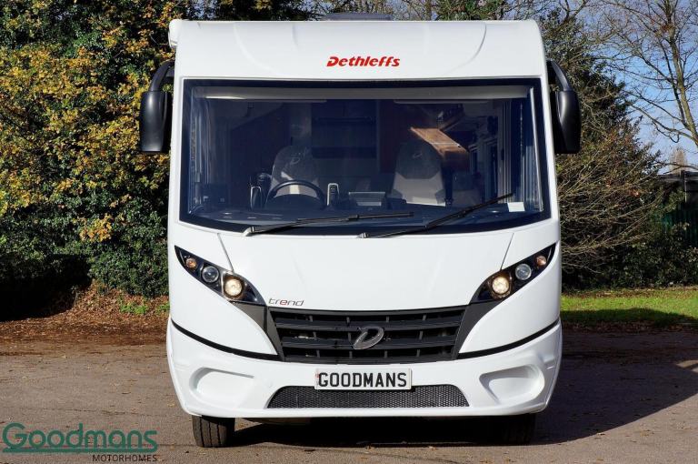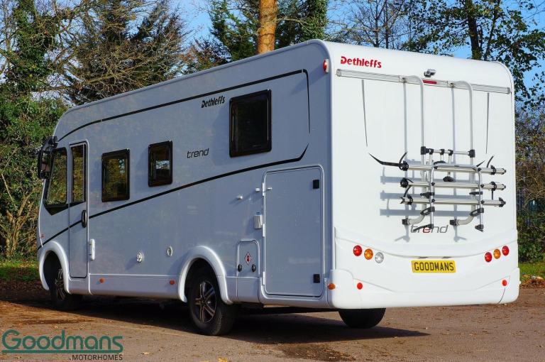 White, 0 owners, Awning, Bike Rack, 12v Power, Cab Air Conditioning, Cassette toilet with electric flush, CO2 Detectors, Cruise Control, Exterior Access / Storage Locker, Exterior Gas Bottle Locker, Fire Extinguisher, Fixed Bed, Flyscreen and Blinds, Power Steering, Swivel Passenger Seat, Swivel Drivers Seat, The 2024 Dethleffs Trend I7057 DBM is a top-tier motorhome designed for those who value both luxury and convenience on their travels. This model features a sleek design and comes equipped with a manual transmission, ensuring a smooth and effortless driving experience, especially on long journeys.Key features include an integrated solar panel (120W), providing a reliable power source when camping off-grid, and a sturdy bike rack for easy transport of your bicycles. The spacious awning extends your living area outside, offering a comfortable, shaded space to relax or dine. Vehicle is also equipped with a reversing camera.Inside, the motorhome is equipped with a large fridge freezer, a hob, grill, and oven, making meal preparation easy and convenient. The Truma Combi 6E heating system ensures that the interior remains warm and cosy, regardless of the weather. A wide habitation door enhances the sense of space and offers easy access in and out of the motorhome.All of our Motorhomes come with at least twelve months warranty and annual habitation check., Explore More with Goodmans ? Quality Motorhomes, Great Deals