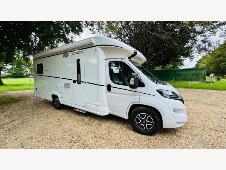 White, 2024 DETHLEFFS TREND T7057 EB MANUAL The Dethleffs Trend T7057 EB is a premium 7.41m motorhome built on the reliable Fiat Ducato 2.2L 140bhp chassis with a smooth 6-speed manual gearbox. This model offers a superb layout with twin fixed single beds at the rear, which can easily convert into a large double, plus the option to add a drop-down bed above the lounge for added sleeping capacity.Beautifully finished in Ashton wood cabinetry and modern Saros upholstery, the interior feels spacious and bright with a generous 205cm internal headroom. The large panoramic roof light, ambient LED lighting, and well-designed storage throughout make this model ideal for both short getaways and long touring holidays.The central kitchen is equipped with a 2-burner hob, oven/grill, and a large AES 137L fridge/freezer, while the separate shower and toilet provide privacy and comfort.Outside, this motorhome features a large rear garage (heated and illuminated), alloy wheels, electric habitation step, and pre-installed bike rack and awning.Key Features:Fiat Ducato 2.2L 140BHP Euro 66-Speed Manual Transmission4 Berth / 4 SeatbeltsTwin Single Beds (convertible to large double)Optional Drop-Down Bed over LoungeSeparate Shower and Toilet137L AES Fridge FreezerOven and GrillLarge Heated Rear GarageAlloy WheelsBike Rack & Awning IncludedLED Lighting & Ambient Lighting PackageTruma 6kW Gas & Electric Heating SystemPre-wired for SolarAir Con in Cab, Cruise Control, DAB Radio with BluetoothCab Blackout BlindsElectric Entrance StepAvailable at Goodmans Motorhomes with a full manufacturer?s warranty, nationwide delivery available. Part exchange welcome., 0 owners, , Explore More with Goodmans ? Quality Motorhomes, Great Deals