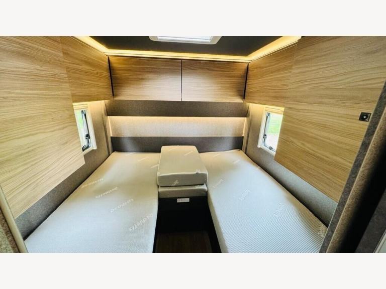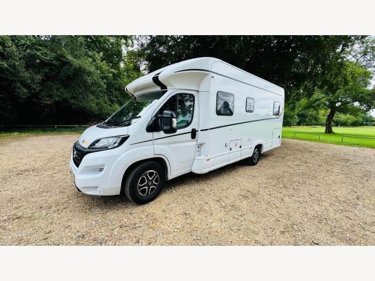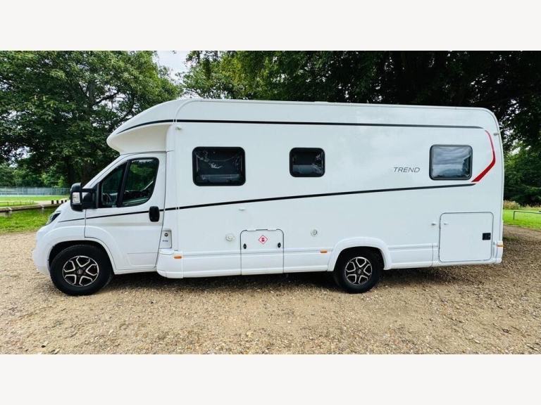 White, 2024 DETHLEFFS TREND T7057 EB MANUAL The Dethleffs Trend T7057 EB is a premium 7.41m motorhome built on the reliable Fiat Ducato 2.2L 140bhp chassis with a smooth 6-speed manual gearbox. This model offers a superb layout with twin fixed single beds at the rear, which can easily convert into a large double, plus the option to add a drop-down bed above the lounge for added sleeping capacity.Beautifully finished in Ashton wood cabinetry and modern Saros upholstery, the interior feels spacious and bright with a generous 205cm internal headroom. The large panoramic roof light, ambient LED lighting, and well-designed storage throughout make this model ideal for both short getaways and long touring holidays.The central kitchen is equipped with a 2-burner hob, oven/grill, and a large AES 137L fridge/freezer, while the separate shower and toilet provide privacy and comfort.Outside, this motorhome features a large rear garage (heated and illuminated), alloy wheels, electric habitation step, and pre-installed bike rack and awning.Key Features:Fiat Ducato 2.2L 140BHP Euro 66-Speed Manual Transmission4 Berth / 4 SeatbeltsTwin Single Beds (convertible to large double)Optional Drop-Down Bed over LoungeSeparate Shower and Toilet137L AES Fridge FreezerOven and GrillLarge Heated Rear GarageAlloy WheelsBike Rack & Awning IncludedLED Lighting & Ambient Lighting PackageTruma 6kW Gas & Electric Heating SystemPre-wired for SolarAir Con in Cab, Cruise Control, DAB Radio with BluetoothCab Blackout BlindsElectric Entrance StepAvailable at Goodmans Motorhomes with a full manufacturer?s warranty, nationwide delivery available. Part exchange welcome., 0 owners, , Explore More with Goodmans ? Quality Motorhomes, Great Deals