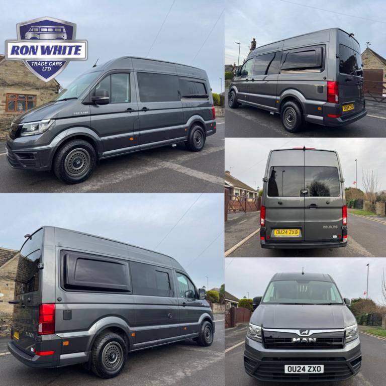 MAN TGE Camper2024 MAN TGE 2.0 TDI LION XS 140PS CAMPER VAN EURO 6OFF GRID CAMPER VANBRAND NEW CONVERSION3 seats, Grey, Fresh to the market we have our latest off grid Man TGE camper van . The van comes fully loaded professionally converted with all the top branded equipment and is ready to go . It features Truma 4de diesel heater and water heater, renogy 300ah lithium battery, renogy 2000w inverter, renogy 200w solar panel, renogy one control panel, renogy split charge system, hook up point, 80 litre wheel arch water tank, maxxfan skylight, maxxfan and light in shower room, 2 ring gas hob, gas locker with gas certification, sink with oak solid oak work top and table, altro floor, led mood lighting, bespoke lightweight ply units, soundproof and insulated, large rear garage, double bed with memory foam mattress, full matching sports seats, portaloo, fridge, van shades, Austops rear side pods, shower room, plugs and usb ports air con apple car play full electrics etc etc , BRAND BEW 17INCH ALL TERRAIN ALLOYS AND TYRES, THIS VAN HAS BEEN CONVERTED TO A VERY HIGH STANDARD , FULL 12 MONTH CONVERSION WARRANTY , PX WELCOME AT TRADE PRICES ONLY, VARIOUS FINANCE PACKAGES APPLY THROUGH OUR WEBSITE , FIRST TO VIEW WILL BUY , WE WILL NOT BE BEATEN ON PRICE OR QUALITY , PRICE INCLUDES VAT
