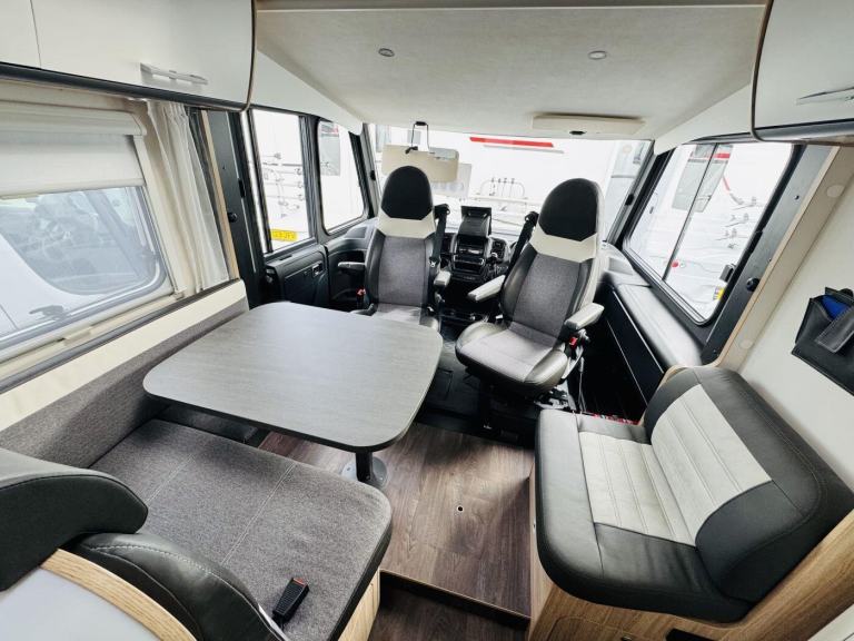 White, Explore in style with the 2024 Sunlight I69L Adventure, a luxurious A-Class motorhome designed for ultimate comfort and versatility. This manual 4-berth model features an island bed and a convenient pull-down double bed, ensuring ample sleeping space for family or friends. The fully equipped kitchen and spacious living area offer all the comforts of home on the road. Additional highlights include a bike rack for outdoor enthusiasts and an awning to extend your living space outdoors. Combining luxury, functionality, and adventure-ready features, the Sunlight I69L Adventure is your perfect travel companion for unforgettable 2024 journeys.Base vehicle FiatFiat Ducato 3.500 kg ? 2.2 Multijet ? 103 kW / 140 BHP manual automatic gearbox, 90l fuel tank, Automatic cab air conditioning, Cruise control, USB portComfortFurniture Decor Cozy Cottage, Black Flow, Dyna White und Active Grey, Soft furnishing Adventure, Isofix for 2 seats, L-shape lounge with free-standing and rotating table, Island bed, Pull-down bed with Clima-Plux elements as standard on A-Class models, Carpet, Foldable window blindsBathroomSwivel cassette toilet with electric flush, Spacious bathroom with separate shower on the opposite side, Large mirrors, Clothes rail in bathroomHeating / gas supplyGas bottle locker for 2 x 11 kg gas bottles, Gas control valves easily accessible and centrally arrangedKitchenTwo-flame cooker with 12 V ignition and glass cover, Large, round kitchen sink in stainless steel, Large drawers with soft-close in the kitchen unitInstallationsHeating Combi 6 E (with el. heating element) incl. digital control panel, Oven in kitchen (only in conjunction with 156 l fridge), High-performance, maintenance-free leisure battery (95 Ah AGM), Electric charger for leisure and vehicle battery 12 V / 18 A, 0 owners, , Explore More with Goodmans ? Quality Motorhomes, Great Deals