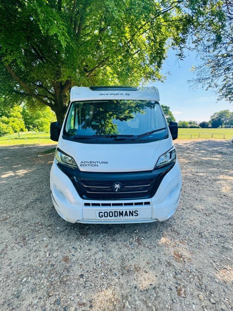 White, The Sunlight V60 Adventure automatic is a marvellously designed and versatile recreational vehicle, promising an unparalleled travel experience. With its sleek contours and state-of-the-art features, this motorhome is a true adventurer?s dream. The V60 Adventure boasts ample living space, seamlessly merging comfort and functionality. Its cleverly optimized interior accommodates a fully equipped kitchen, a spacious dining area, and cozy sleeping quarters, ensuring a homely ambiance on the go.Built to conquer diverse terrains, the V60 Adventure is equipped with robust off-road capabilities, offering the freedom to explore remote and scenic locations with ease. The large panoramic windows flood the interior with natural light, allowing occupants to relish breathtaking vistas from the comfort of their mobile haven.Safety is paramount in the V60 Adventure, featuring advanced driving assistance systems and reinforced construction for a secure journey. Whether embarking on a cross-country road trip or venturing off the beaten path, the Sunlight V60 Adventure stands out as the perfect companion for intrepid travelers seeking both luxury and thrilling escapadesDetailed specification:Fiat Ducato 2.2 M/Jet 140PS automaticCruise ControlChassis colour whiteMulti functional steering wheel Headlights with black frameLED daytime running lightsRadio aerial integrated in mirrorFix & Go breakdown kitHeating Combi 6EPre-writing for solar & reversing cameraPre-cabling for TV and TV bracket90l fuel tank16-inch alloy wheelsSwivel Captain chairs with coversElectric. Step extendable entrance stepFlyscreen DoorCarpetsOvenFiat style pack (leather steering wheel and gear knob in leather trim; silver air outlets; black gloss radiator grill with chrome stripes, skip plate black), 0 owners, , Explore More with Goodmans ? Quality Motorhomes, Great Deals