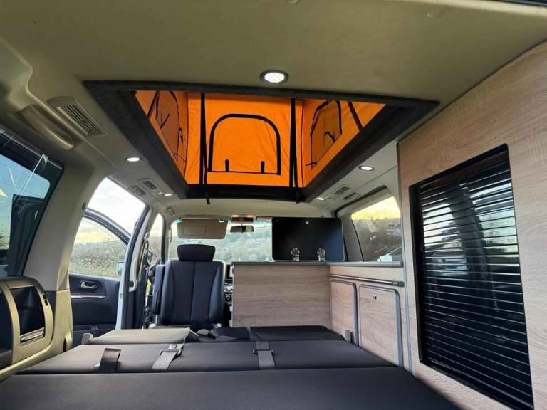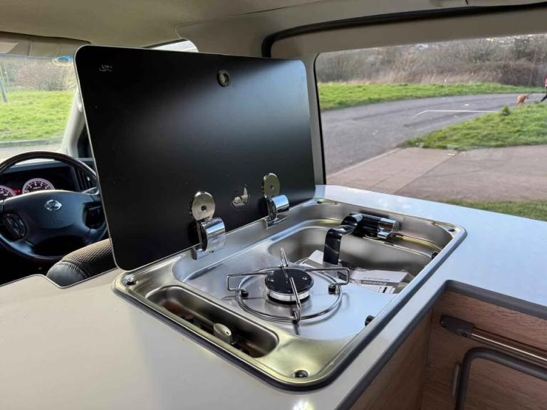 This is a beautifully clean, rust-free example of the popular Nissan Elgrand, freshly imported from Japan and already registered in the UK as a Motor Caravan. It drives superbly, with no faults or issues, and is ready for adventure.The vehicle features a brand-new professional camper conversion by Ideal Campervan Ltd, completed to a high standard and fully equipped with everything you need for touring.It includes a pop-top roof with windows and extra sleeping space, a rock and roll bed with three seatbelts, and a swivel front seat. The kitchen area features a sink and hob unit with two water containers, a pull-out fridge, and practical storage cupboards.Power is supplied by a 125Ah leisure battery with split charging, mains hookup, and a solar panel. There is also a water pump, LED lighting, and durable vinyl flooring for easy maintenance. All our campervans come with a 12-month Autoguard warranty and a 12-month campervan conversion warranty from Ideal Campervan.