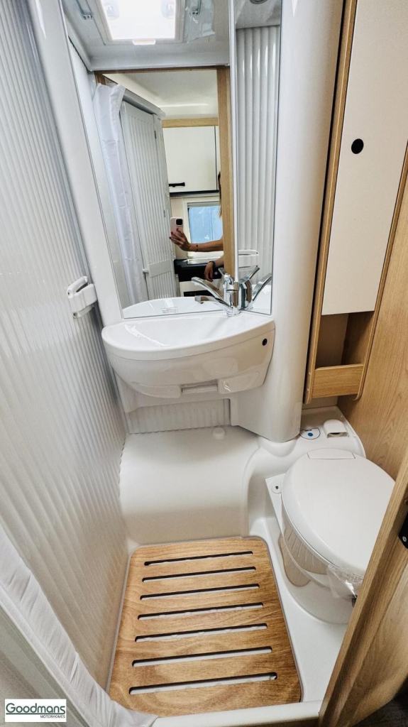 White, 2025 model, twin beds, great condition, 0 owners, 12v Power, Awning, Bike Rack, Battery Charger, Blown Air Heating, Cab Air Conditioning, Cassette toilet with electric flush, CO2 Detectors, Cruise Control, Dining Table, Electric Entrance Step, Electric and Gas Heating, End Bedroom, External 240v, Exterior Access / Storage Locker, Fire Extinguisher, Fixed Bed, Flyscreen and Blinds, Fresh / Waste Water Tank, Fridge/Freezer, Hob and Grill, Hot And Cold Shower Unit, Immobiliser, Leisure Battery, Mixer Taps, Oven, Power Steering, Rear Seat belts, Single Bed(s), Shower, Sink, Skylight, Swivel Chairs, Sunlight V66 Adventure – Automatic | 2025 Model | Available at Goodmans MotorhomesThe Sunlight V66 Adventure is the perfect low-profile motorhome for those seeking comfort, style, and practical performance. Built on the latest 2025 Fiat chassis with a smooth automatic transmission and 140bhp engine, it’s ideal for both long road trips and weekend getaways.This vehicle comes packed with fantastic extras, including:Awning bike rack – extend your outdoor living space with ease and functionality90L Fuel Tank – for fewer refuelling stops on longer journeysBlack Alloy Wheels – adding a sleek, sporty lookWhite Exterior – premium and stylish finishDuck Board in Shower Tray – improved comfort and drainageRemis Cab Blinds – providing privacy and insulation12V TV Pre-Cabling with Flat-Screen TV Holder – TV installation made simpleUSB Ports Integrated in Light Rail – convenient charging pointsPre-Cabling for Solar Panel and Reversing Camera – ready for easy upgradesInsulated Waste Water Tank – essential for winter touringCarpets – adding a cosy, homely feelOven in Kitchen – great for home-style cooking on the roadThe V66 offers a fantastic layout with two single beds at the rear (which can be made into a large double), a spacious bathroom, and a well-equipped kitchen — perfect for both couples and small families.Available now at Goodmans Motorhomes — ready for your next adventure!, Explore More with Goodmans ? Quality Motorhomes, Great Deals