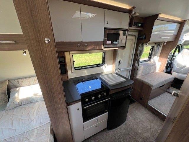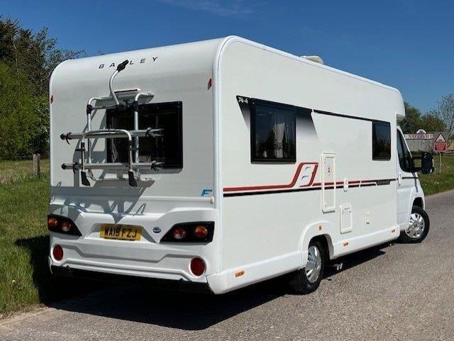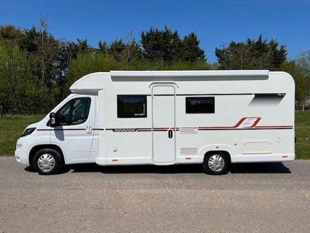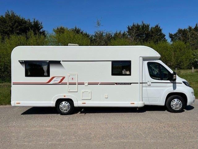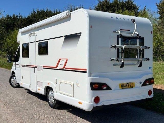 This 1 owner Bailey Advance 74-4 features; 4 Berth, 4 Belted Seats, Rear Transverse Island Bed, Front Lounge Conversion to Double Bed, Partition to Rear, Mid Bathroom, Thetford Triplex Oven and Grill, Daewoo Microwave, Sink and Drainer, Dometic Fridge Freezer, Cello Bedroom TV, Extensive Cupboards, Fitted Blinds, Truma Heating, Solar, Twin Gas Bottle Storage, Fiamma Awning, Bike Carrier.