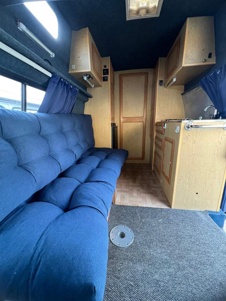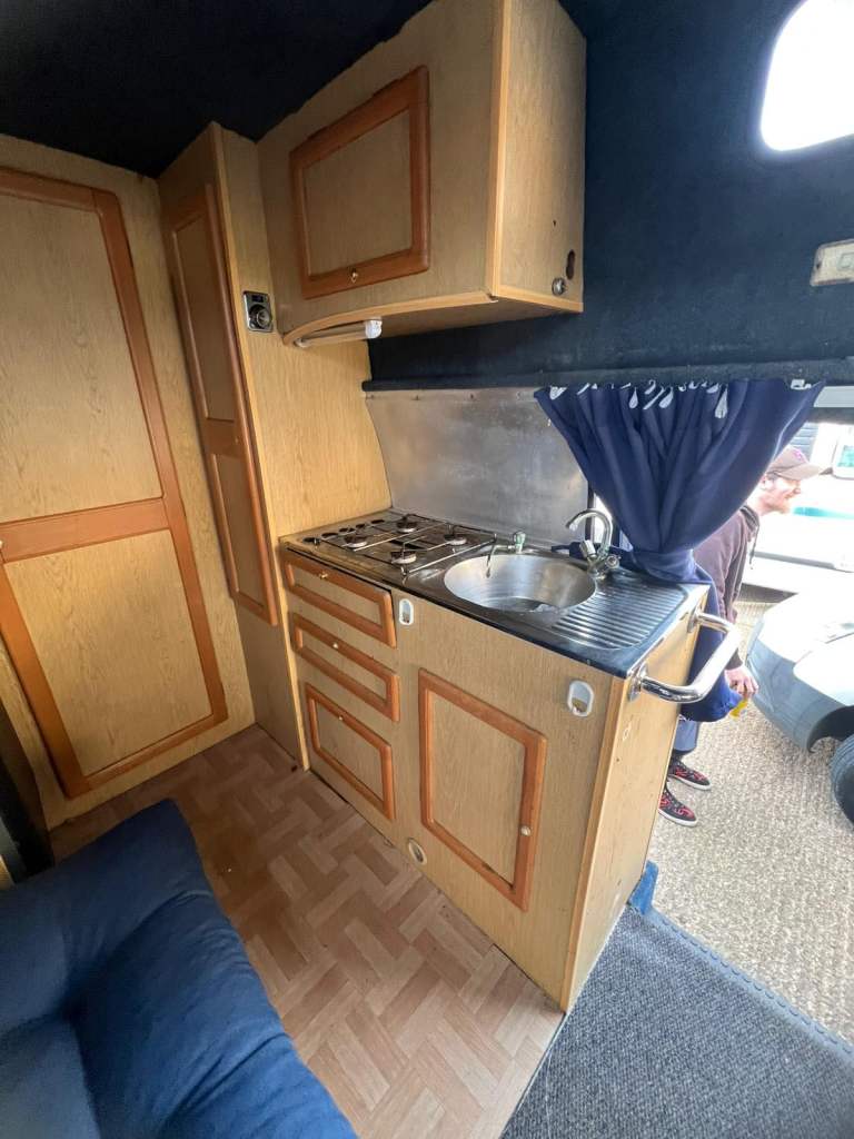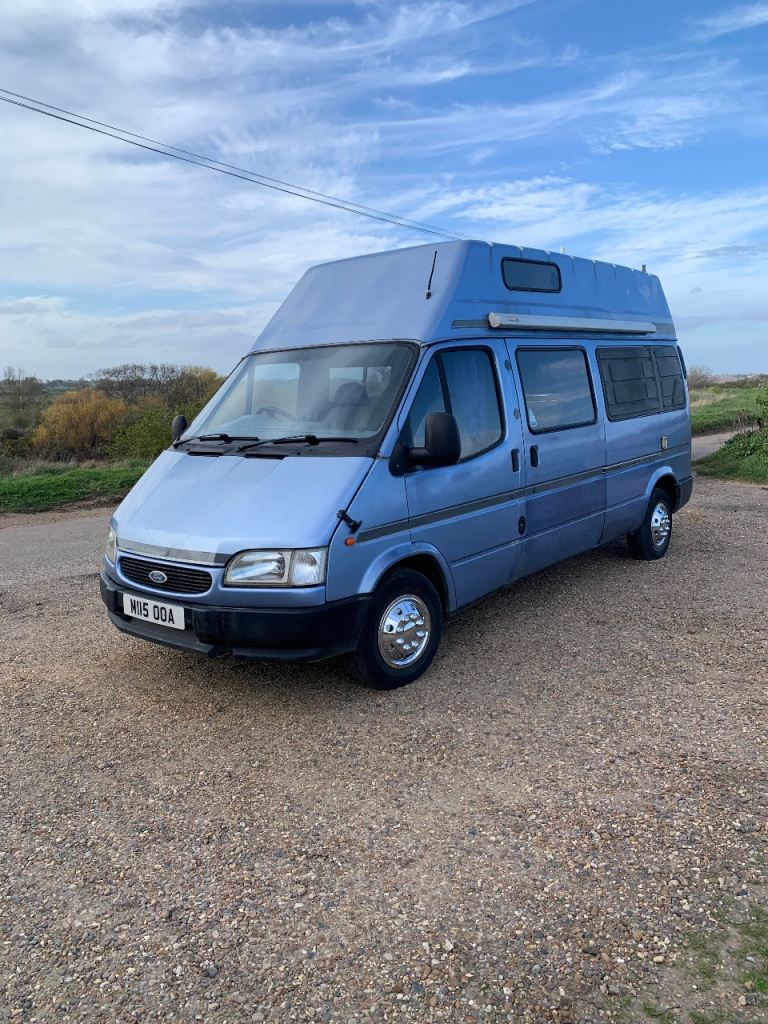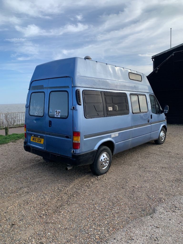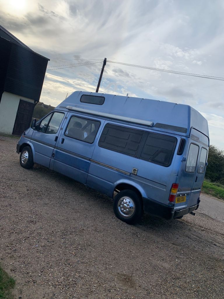 Ford transit 2.5 manual diesel leisure drive long wheelbase 2 berth campervan. With power steering. And the infamous banana engine thats well renowned as bullet proof (160k miles) starts runs perfect. It’s had new arch’s and extensive welding underneath!! So completely solid. It comes with long mot. Inside she is fully equipped with blow air heating toilet shower hot and cold running water 3 way fridge and hobb and sink. Large double bed. Allso above head storage or extra bed. 240v hook up and liesure battery. First to drive will buy. Bodywork isnt Perfecf hence cheap price but solid resdy to use camper located in Clacton on sea Essex