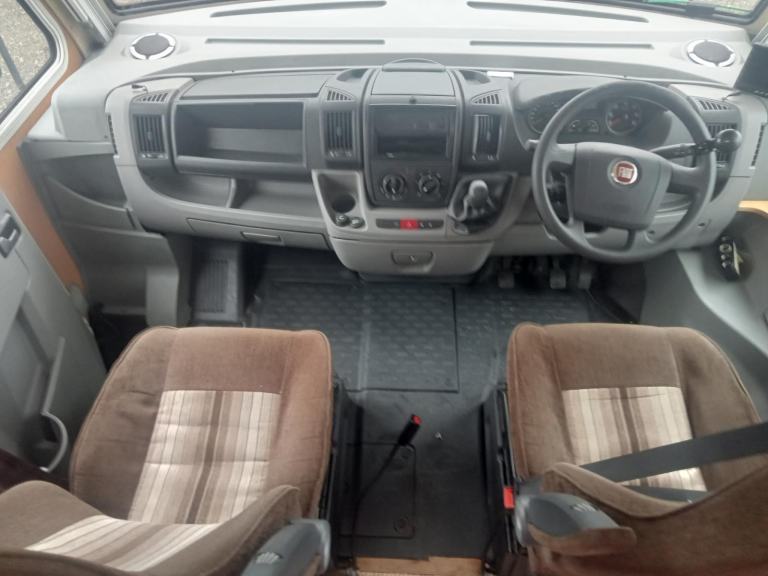 UPHOLSTERY IS IN VERY GOOD CONDITION THROUGHOUT FRONT SEATS HAVE ARMRESTS AND HEADRESTS AND BOTH SWIVEL OVER THE CAB PULL DOWN MASSIVE DOUBLE BED, FORWARD DINNETTE WITH 2 X 3 POINT SEATBELTS SO 4 IN TOTAL, SIDE FACING BENCH SEAT WHICH PULLS ACROSS TO THE DINNETTE WHICH MAKES ANOTHER DOUBLE BED, GAS HOB, OVEN AND GRILL SINK WITH HOT AND COLD WATER FRIDGE WITH FREEZER BOX FIXED END DOUBLE BED, DECENT SIZED BATHROOM WITH SEPARATE SHOWER THETFORD FLUSHING CASSETTE TOILET AND VANITY UNIT WARDROBE TRUMATIC ULTRAHEAT FIRE TRUMA BOILER AND DIESEL HEATER, LOTS OF STORAGE AND CUPBOARDS INCLUDING UNDER THE BED STORAGE, OVER CARPETS THROUGHOUT, ZIG UNIT AND 110/230 V