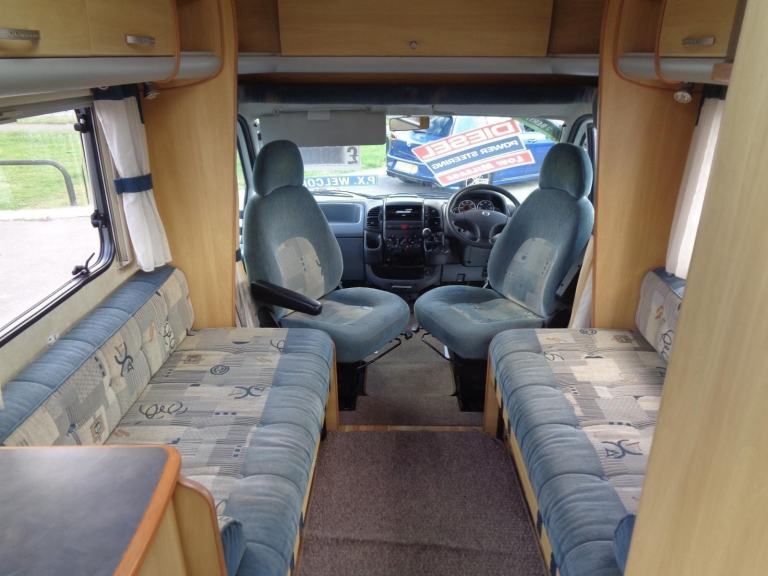 This Motorhome will be supplied with 12 Months MOT. Oil Service. Habitation Service. 6 Months Comprehensive Parts and Labour Warranty Features Include: 4 burner hob, awning, basin, bike rack, blinds, blown heating, cassette toilet, electric mirrors, electric front windows, fly screens, fridge, grill, hot water, leisure battery, loose fit carpet, mains hook up, on board water, oven, powered steering, shower, sink, skylite, swivel seats, tv aerial, wardrobe, wine rack