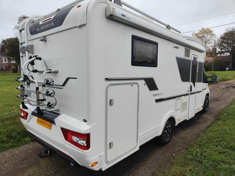 This is an outstanding examples of Adrias best selling Matrix 670sc plus. This 5 berth, 5 seatbelt model features the desirable island bed to the rear with a garage underneath plus a drop down double above the front dining area. This 7.49 metre long motorhome is plated at 3800kgs so a C1 licence will be required. This low profile motorhome is based on the excellent Fiat Ducato cab with the 2.3 multijet engine that produces 130bhp with a 6 speed manual gearbox, cruise control and cab aircon. Excellent standard spec with the addition of a satellite dome, Awning with full enclosure, reverse camera, 3x cycle rack, towbar and a tv with aerial. 10,755 miles from new with great history. Last hab check in october 2025 and last engine service september 2025. Mot until october 2026. A great low mileage example that is in excellent condition. 2 year warranty included for peace of mind. Based in Kent and more pictures available.