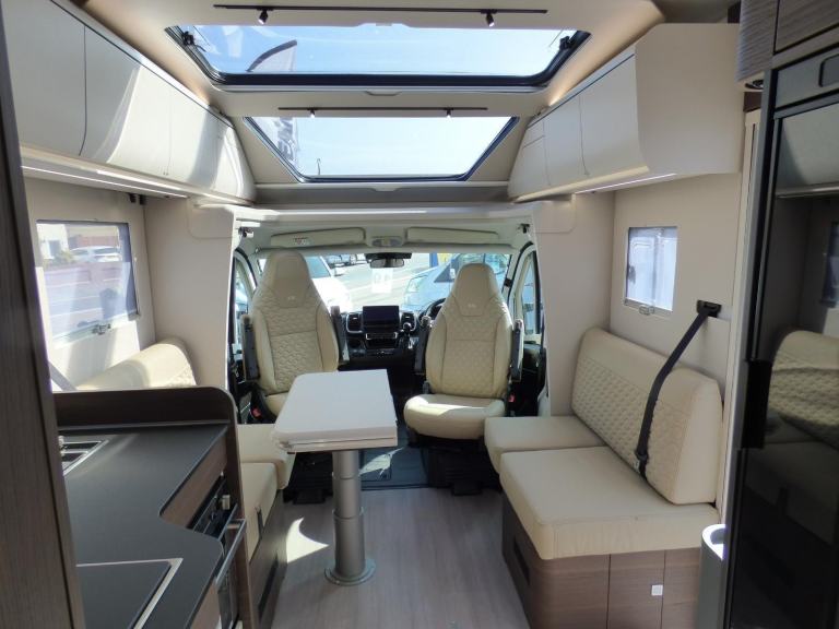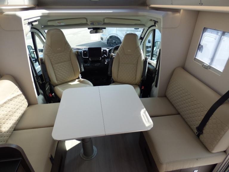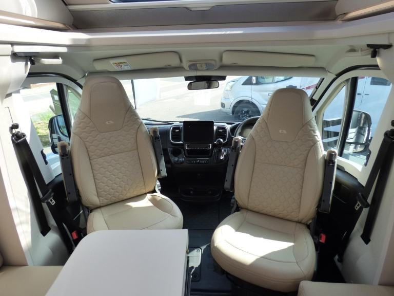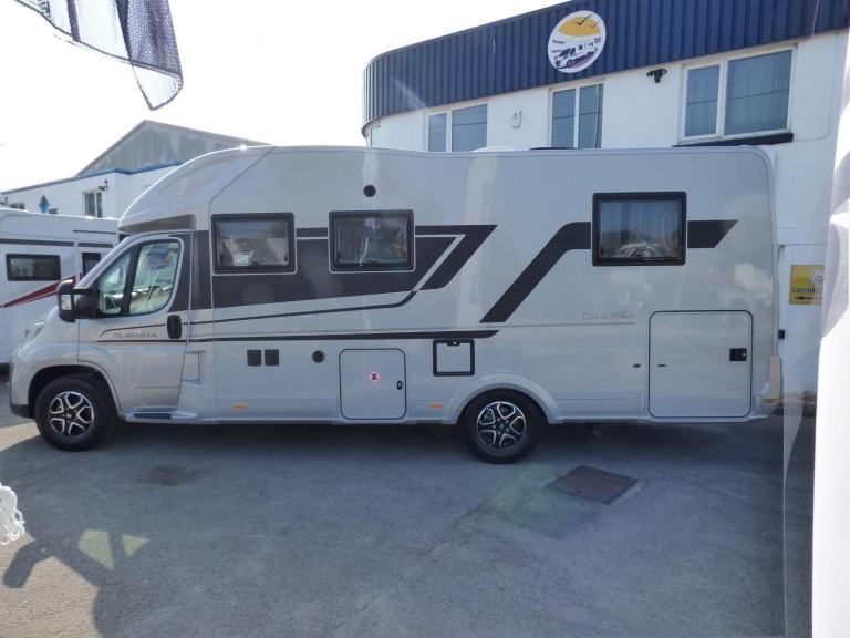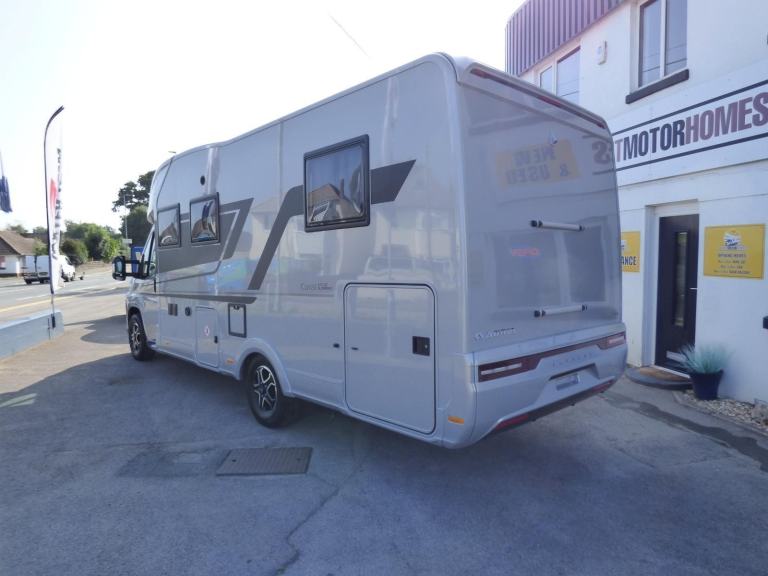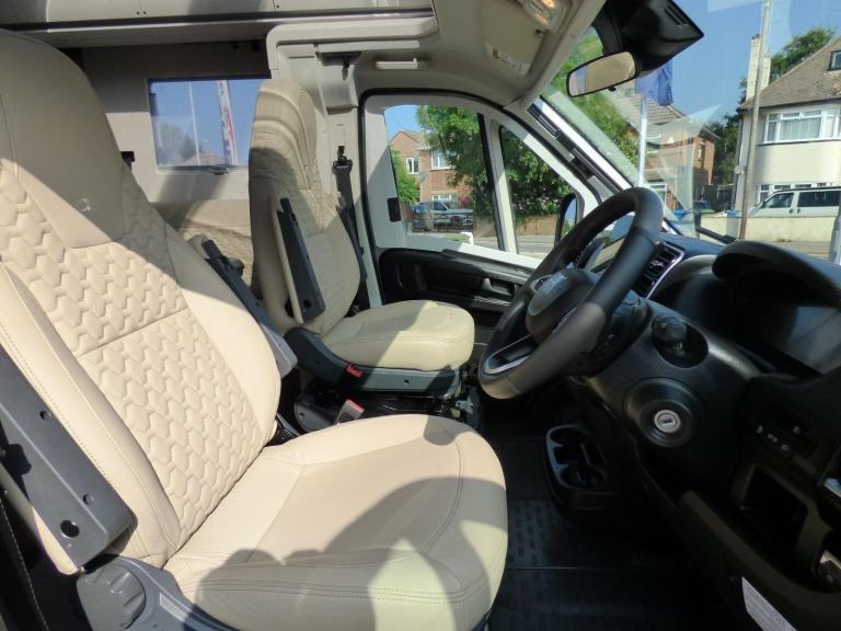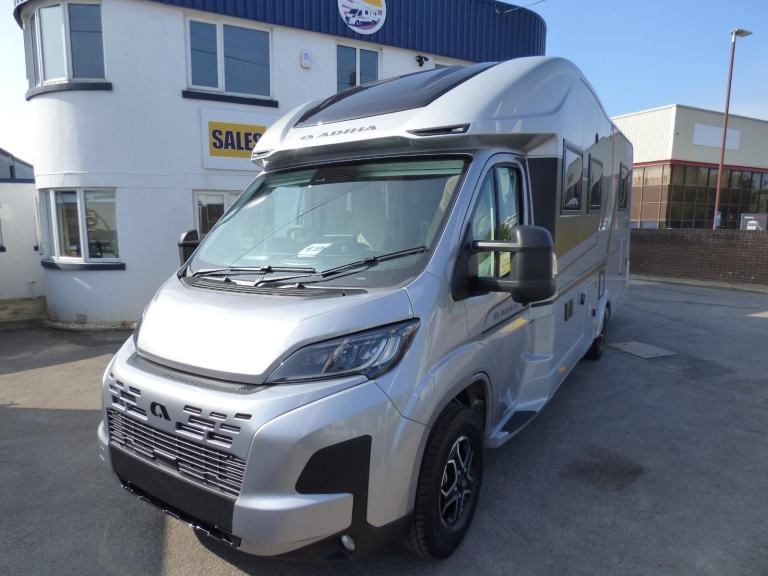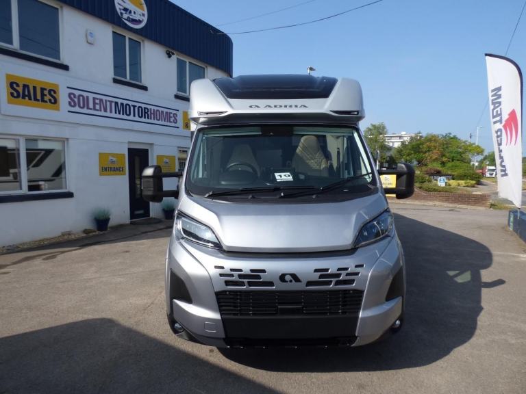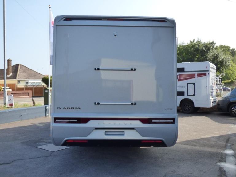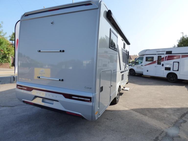 New 2025 Model Adria Coral Supreme 670 DC in stock now. The stunning Adria Coral Supreme 670 DC is based on the Fiat Ducato chassis with 140bhp engine and 8 speed automatic transmission. The front seats swivel to face opposing sofas making a dinette that can seat five and turns into a single bed for night time use. Trimmed in Beige "Charles" Leather, it is a luxurious motorhome with a very light and airy feel thanks to the very large sun roof panel. The kitchen is fitted with a 3 burner gas hob, gas oven and grill along with a fridge/freezer and coffee machine. The central bathroom has a separate shower cubicle and opposite, there is a cassette type toilet and wash hand basin all separated by a Jack & Jill door to provide privacy to the bedroom and lounge areas. The rear bedroom has a large Island bed with a tilt mechanism to allow day time use. Lots of cupboard space can be found throughout and there is a large rear garage too. Heating and hot water are provided via an Alde system and other features for this Adria Coral Supreme 670 DC include: Leather Upholstery, Thule awning, Roof mounted Habitation A/C, solar panel, corner steadies, Fiat Lux Pack, 2nd Leisure battery, Carpets, Adaptive Cruise Control and coffee machine. 3 Berth, 4 Seatbelts, L. 7.485m, W. 2.29m, H. 2.905m, 3,650kg. Delivery Miles. Features Include: adaptive cruise control, alloy wheels, automatic transmission, carpets, coffee machine, corner legs, fiat lux pack, habitation air conditioning, iso fix child seat fixings, leather upholstery, pleated cab blinds, reversing camera, solar panel, thule awning, twin leisure battery option, free prestige pack worth £1655!
